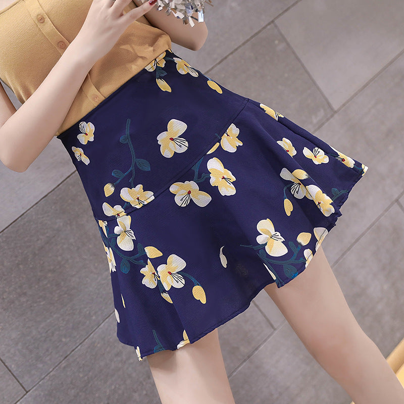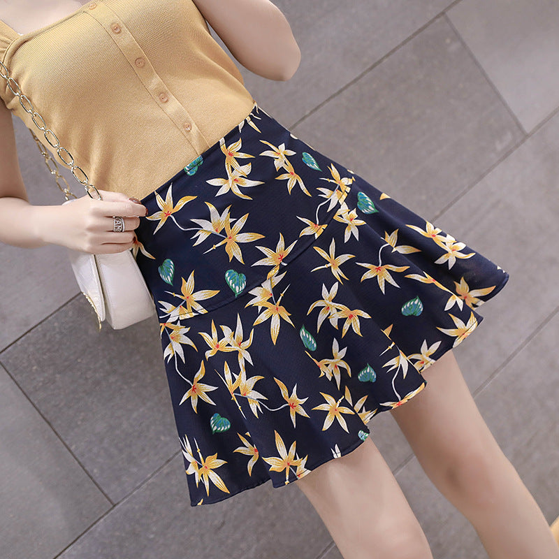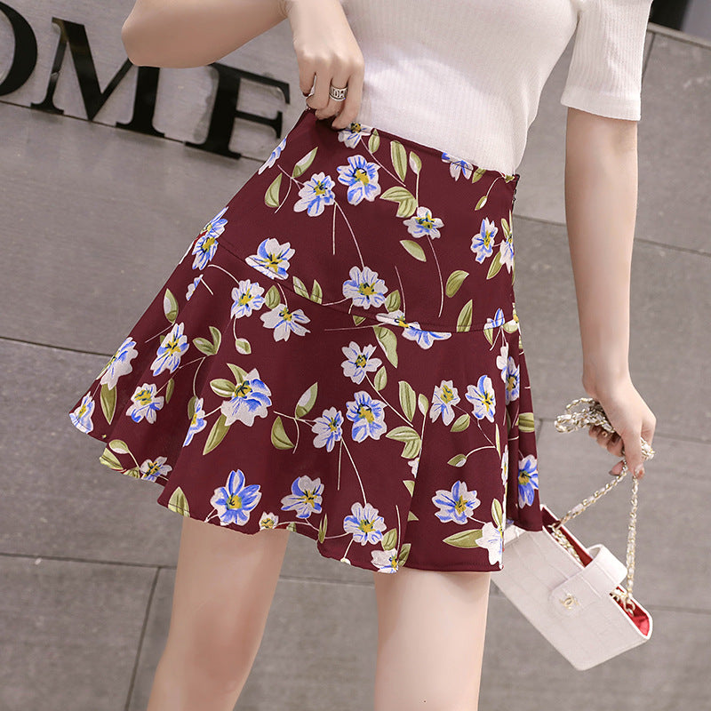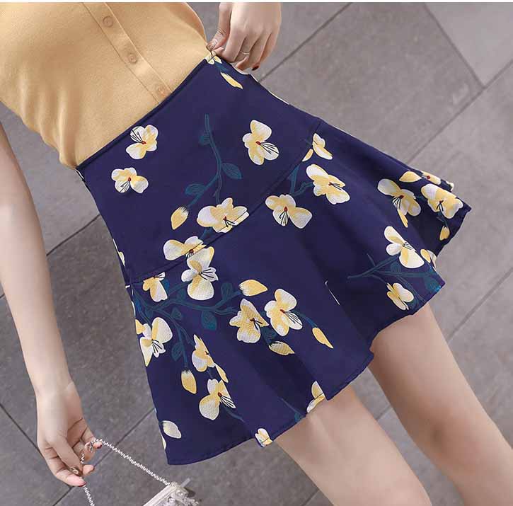 Spring Summer Vintage Women Fashion Floral Printed High Waist Short Pleated A Line Girly Above Knee Skirt Skirts