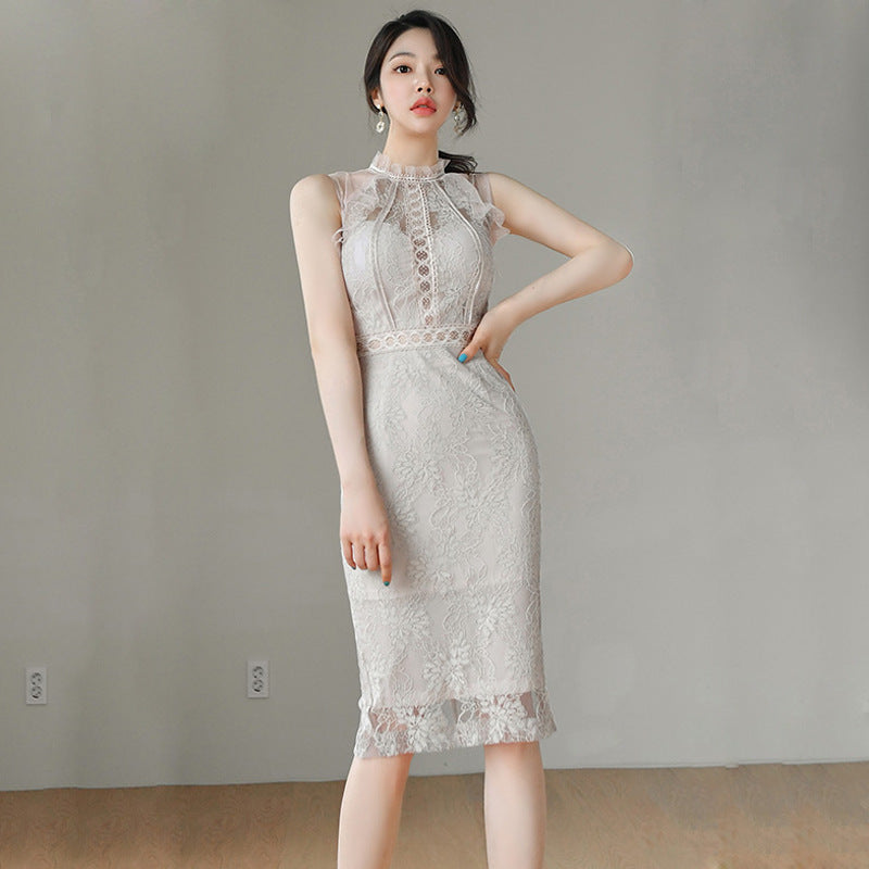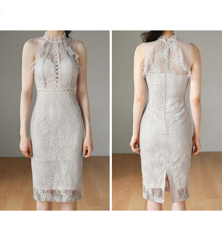 Pattern: High Collar, Sleeveless, Floral Lace Dress