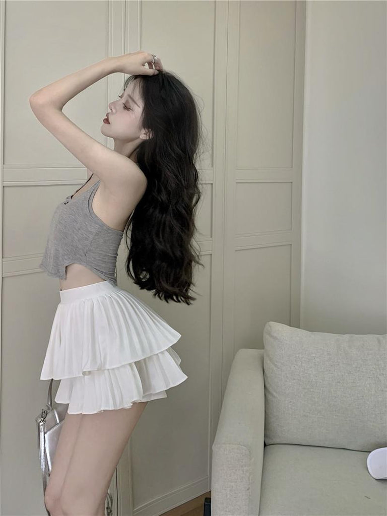 Summer Women Pleated High Waist A line Ruffle Hem Mermaid Fishtail Short Layer Cake Skirt Skirts