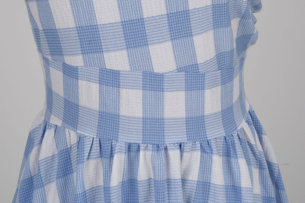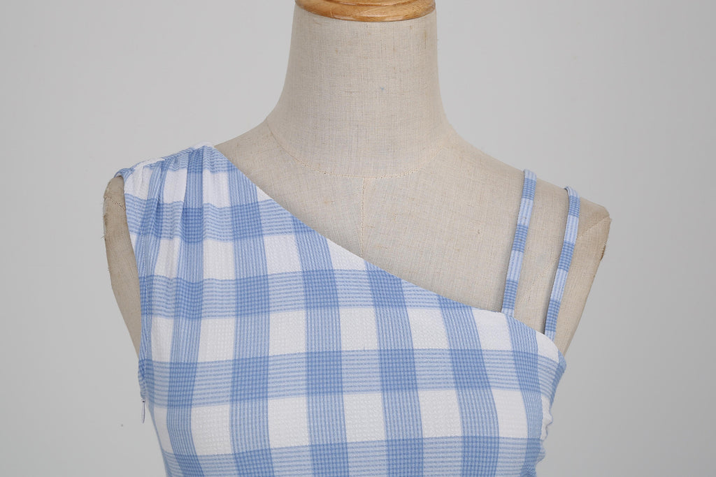 Sunny Day Women Retro Vintage One slanted Shoulder Asymmetrical Pleated High Waist Sleeveless Large Swing Mid-length Dress