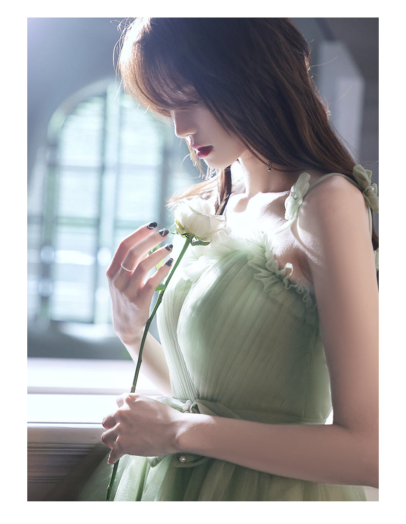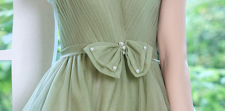 Sweat Chic Princess Women Fashion Green Puff Sleeve Bridesmaid Banquet Party Ball Prom Dress Gown