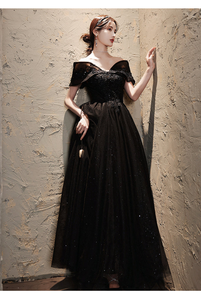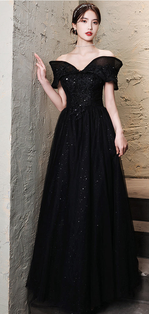 Temperament Elegant Sexy Floor Length V Neck Off Shoulder Evening Dress