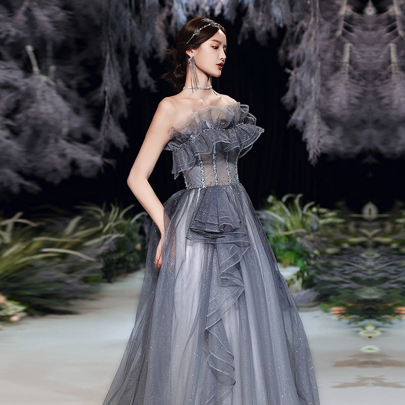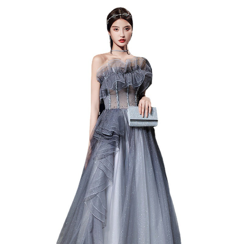 Temperament Elegant Sexy Tube Top Lace Off Shoulder Evening Dress