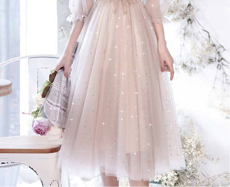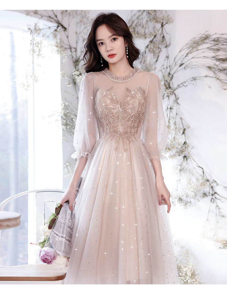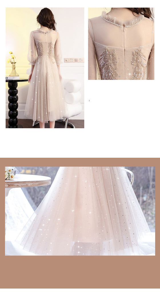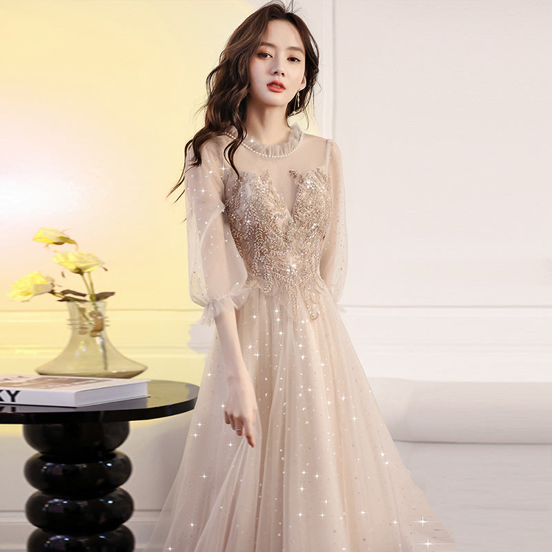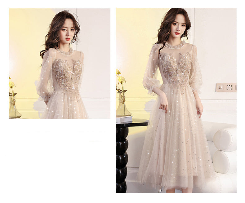 Temperament Evening Luxury High End Bridesmaid Banquet birthday Beading Pleated Round Neck Prom Dress Gown