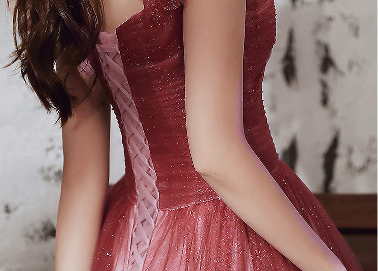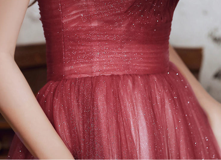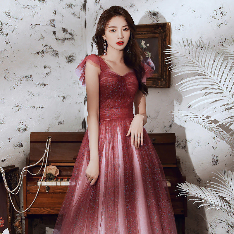 Temperament Fairy Elegant Wine Red Gradient Banquet Pleated Shoulder Sleeveless Bandage Evening Maxi Dress