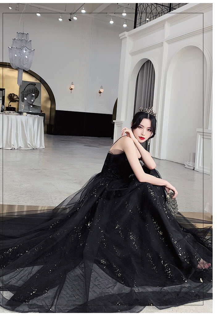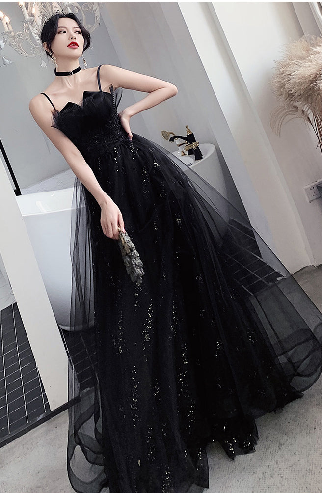Temperament Women Special Black Evening Banquet Meeting Party Spaghetti Strap Pleated Tutu Dress