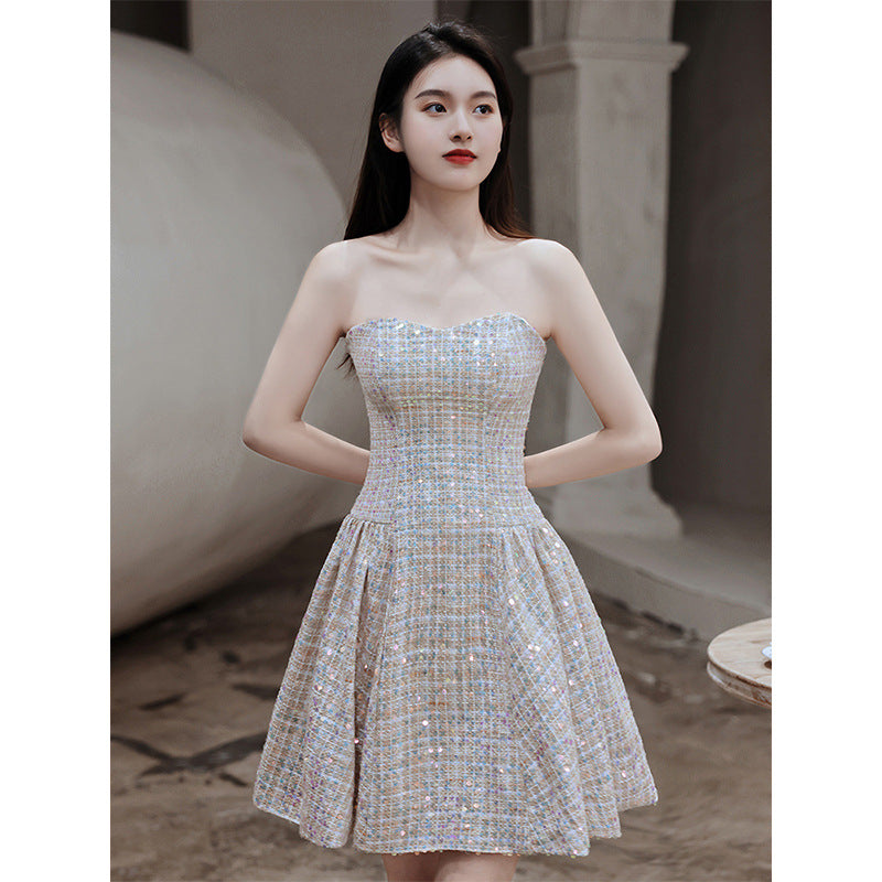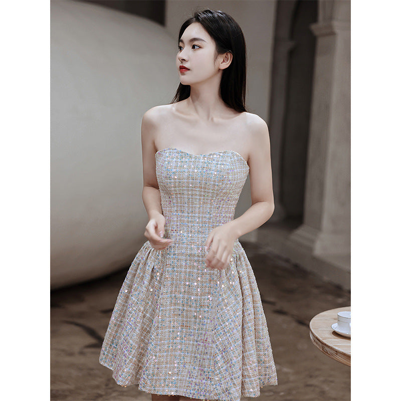 Tube Top Champagne Color Evening Women Prom Party Sweetheart Dress