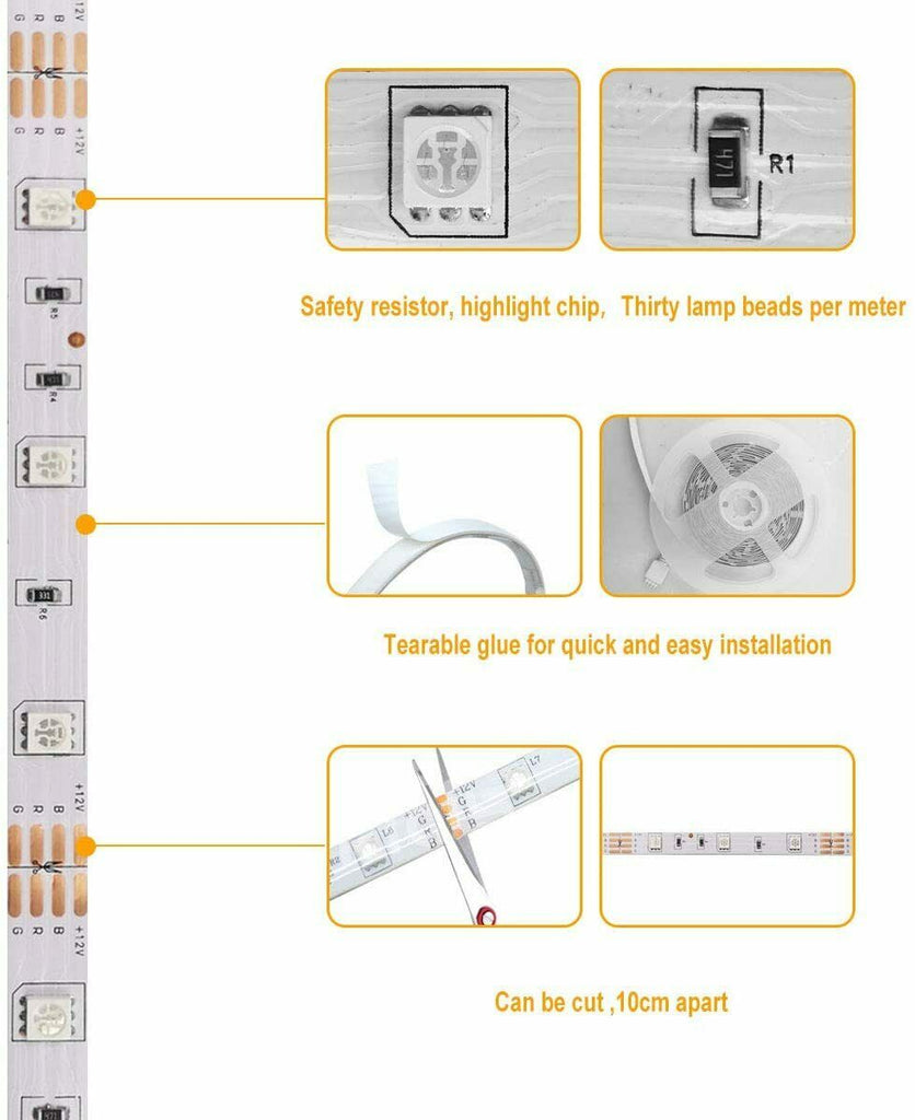 Waterproof Beautiful LED Strip Lights RGB Room 5050 Tape Light Color Changing