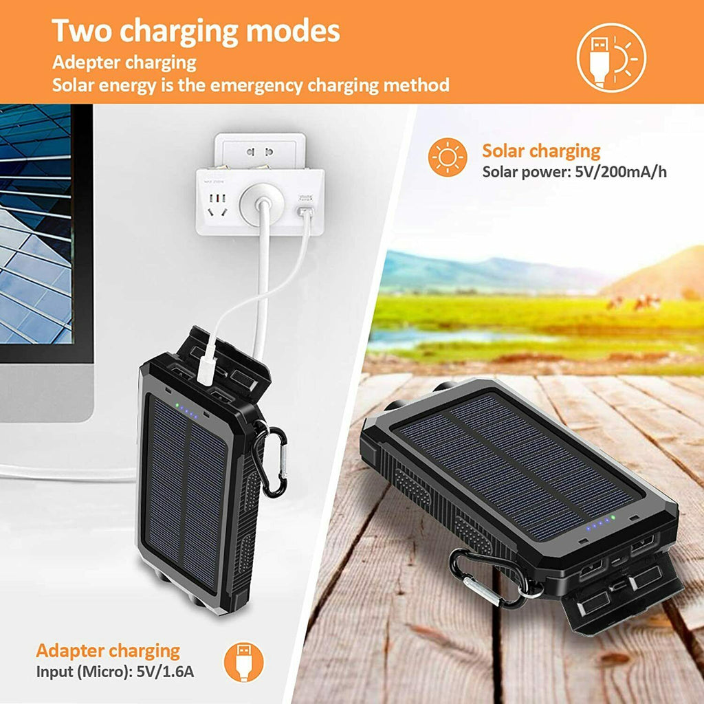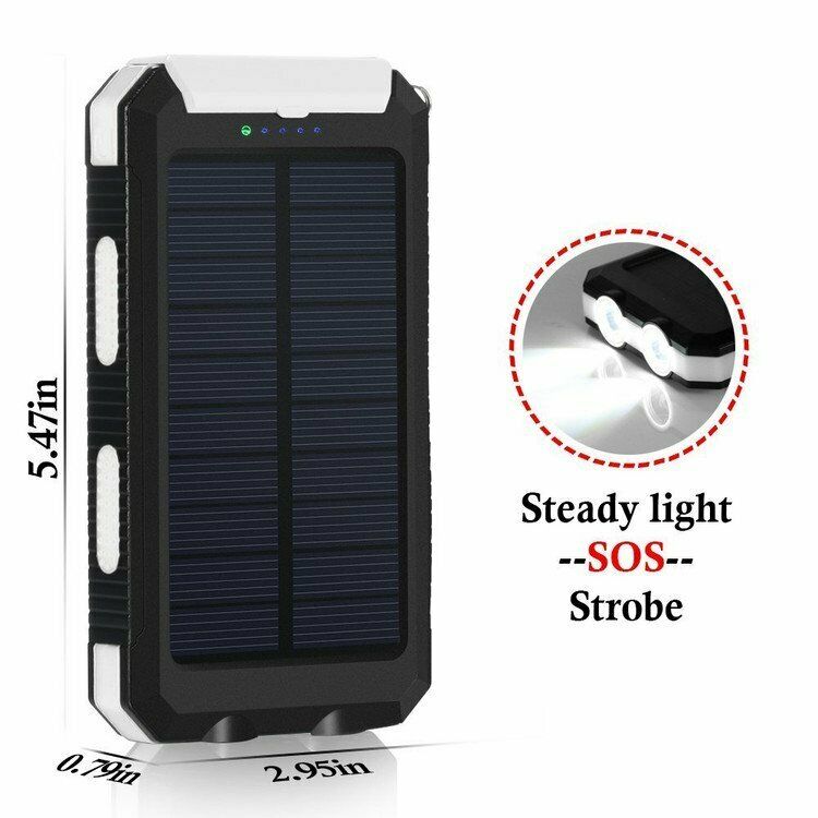 Waterproof Solar Sun Power Bank High Capacity Portable External Battery Charger