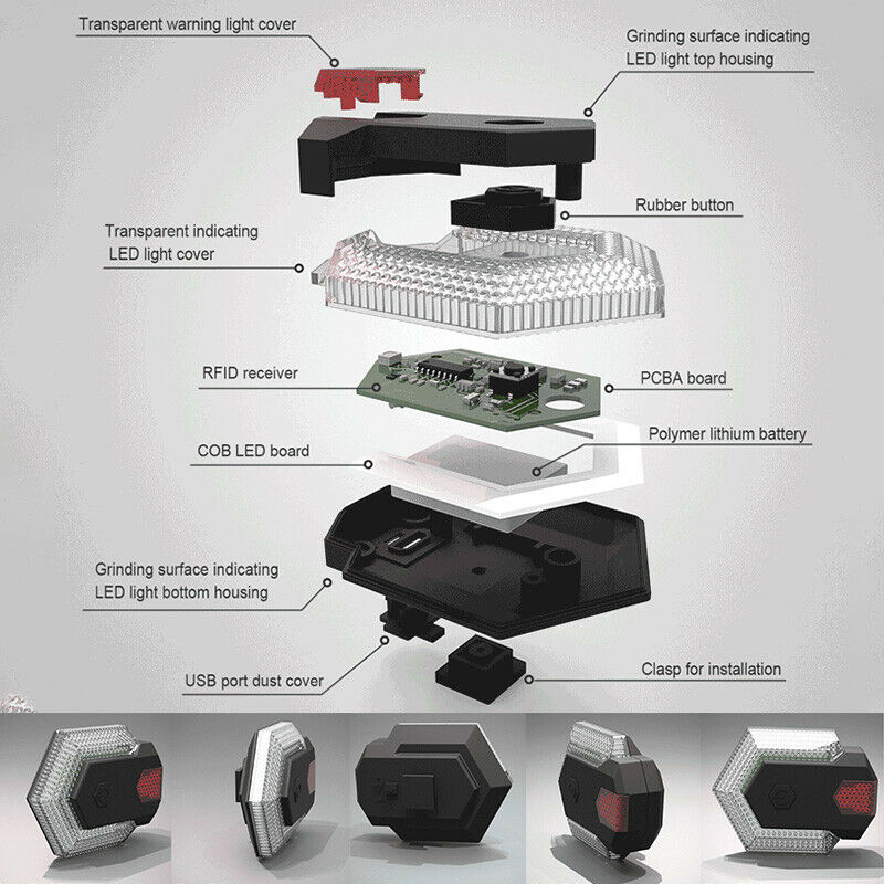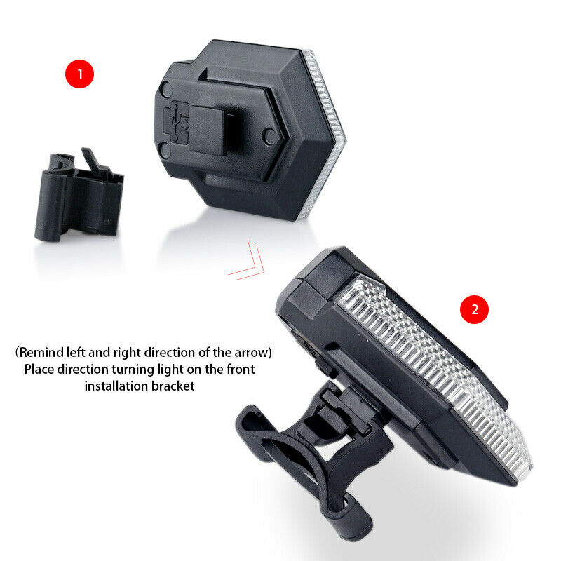 High quality remote LED directional light, perfect for night use, such as cycling, strolling, jogging, walking, road emergency and camping. Its directional flashing indicates that the safety factor at night is greatly improved.