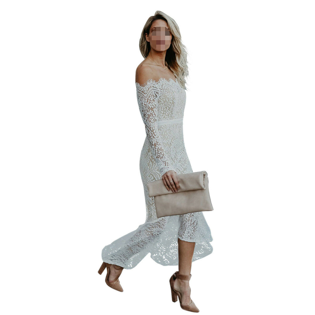 Women Elegant Off Shoulder Lace Long Mermaid Dress Wedding Bridesmaid Formal