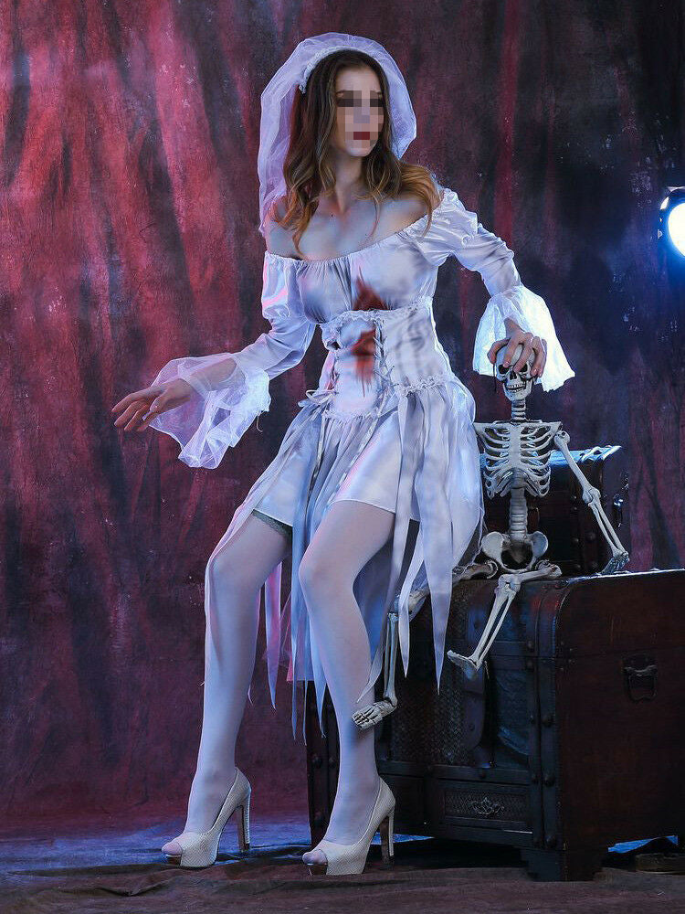 Women Halloween Costume Corpse Bride Fancy Dress Bridal Cosplay Ladies Ghost Scary Looks