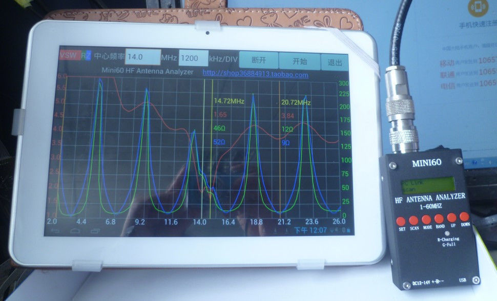 Mini60 Sark100 HF ANT SWR Antenna Analyzer Meter Bluetooth Android APP Win7