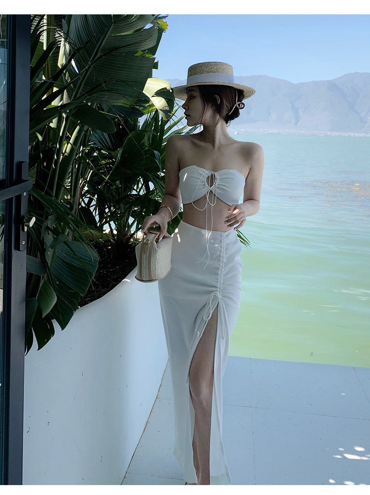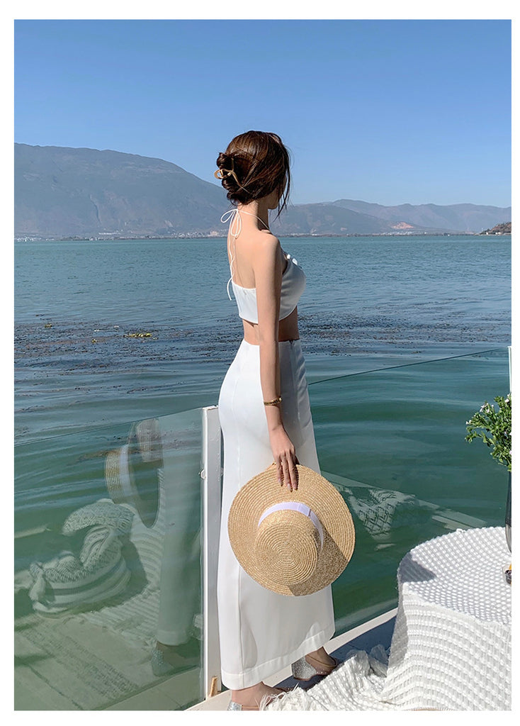 Beach Holiday Temperament Sexy Skirt Long Suit Two Piece Vest Split Side High Slit Dress