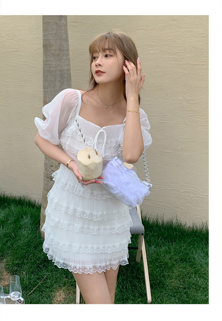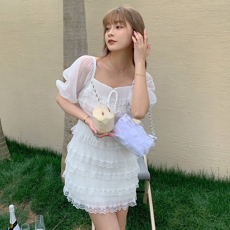 Beach Sweet Chic Women Trendy Skirt Seaside Holiday Slim Ruffled Cake Dress