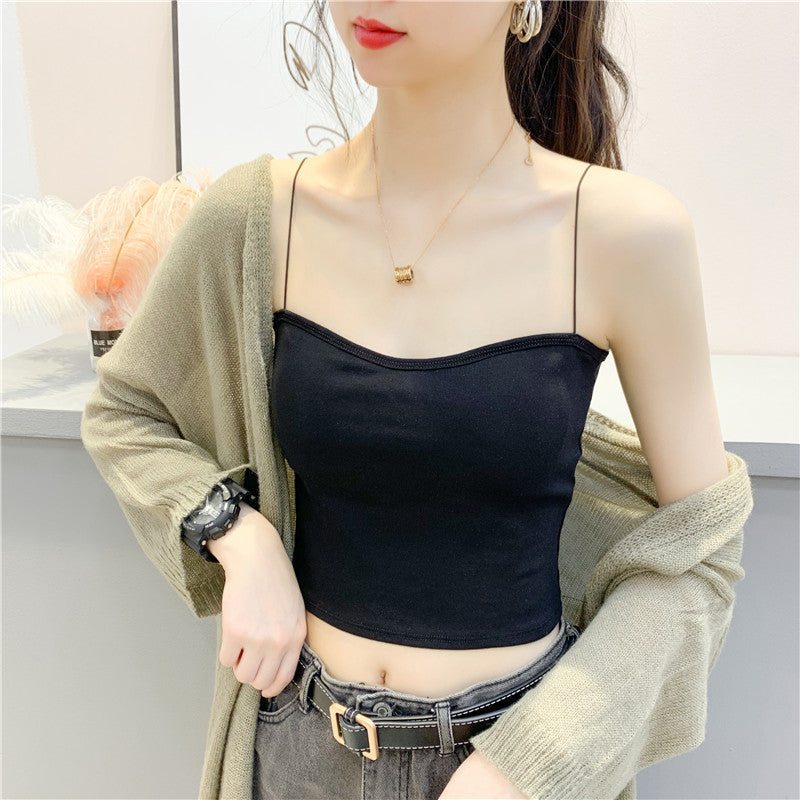 Beautiful Simple Design Sexy Women Spaghetti Strap Sling Tanktop Outer Wear One Piece Camisole Tube Top