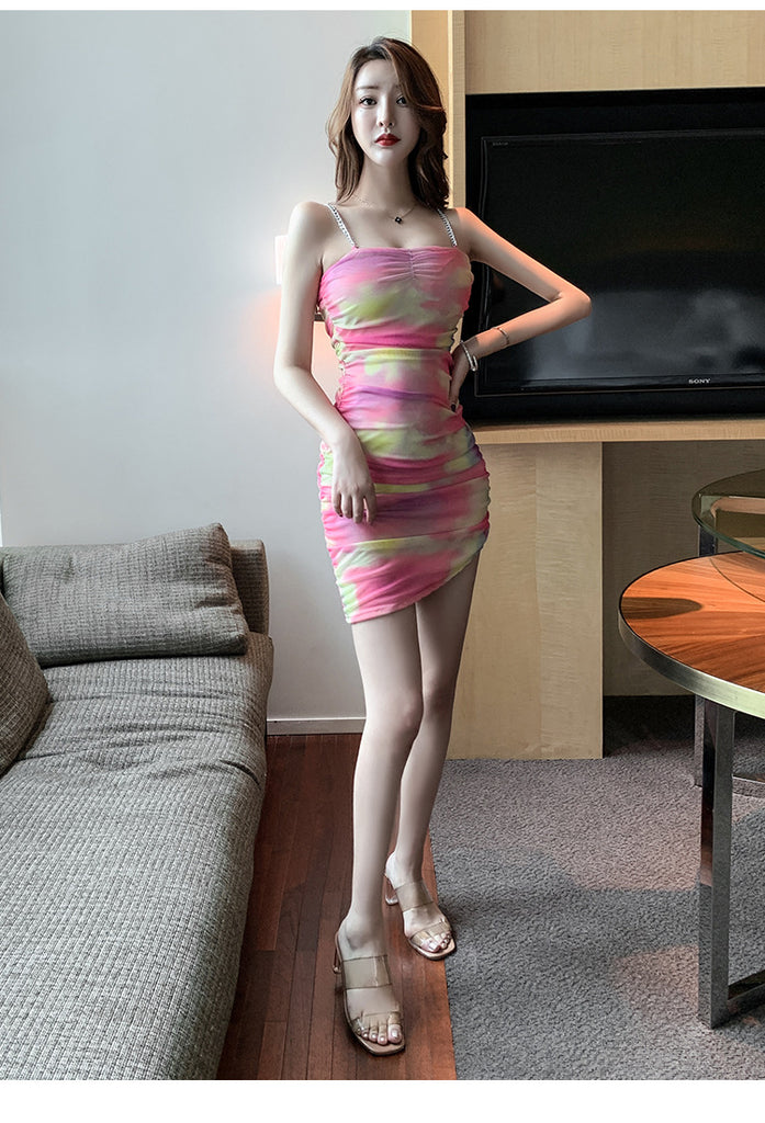 Beautiful Summer Fashion Sexy Women Rainbow Strap Sling Gradient Color Mini Dress