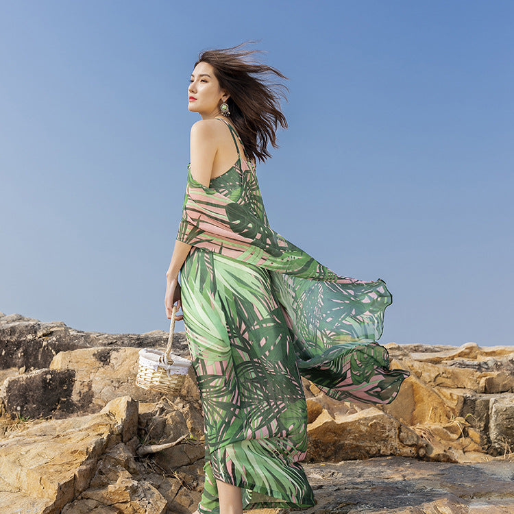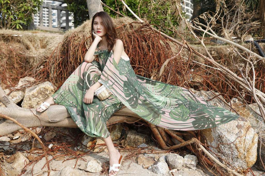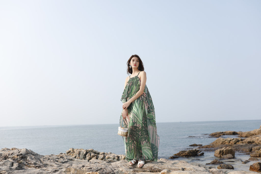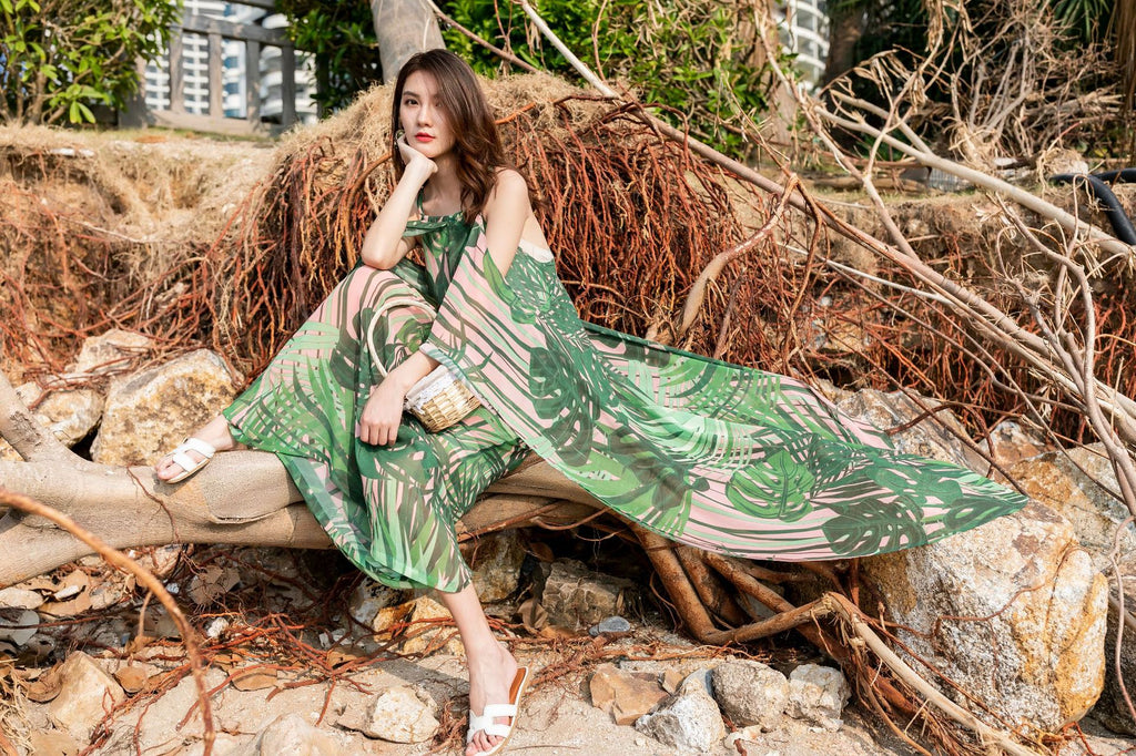 Beautiful Summer Holiday Beach Women Halter Neck Floral Printed Sleeveless Bohemian Chiffon Boho Long Dress
