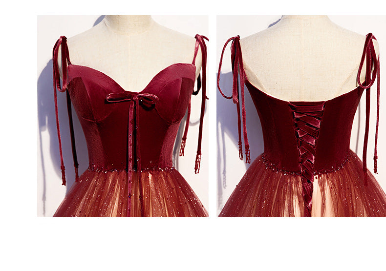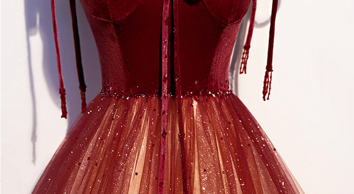 Fairy Chic Beautiful Red Gradient Color Change Spaghetti Strap Sleeveless Prom Dresses