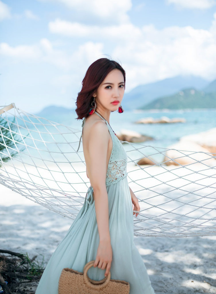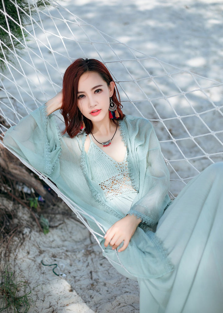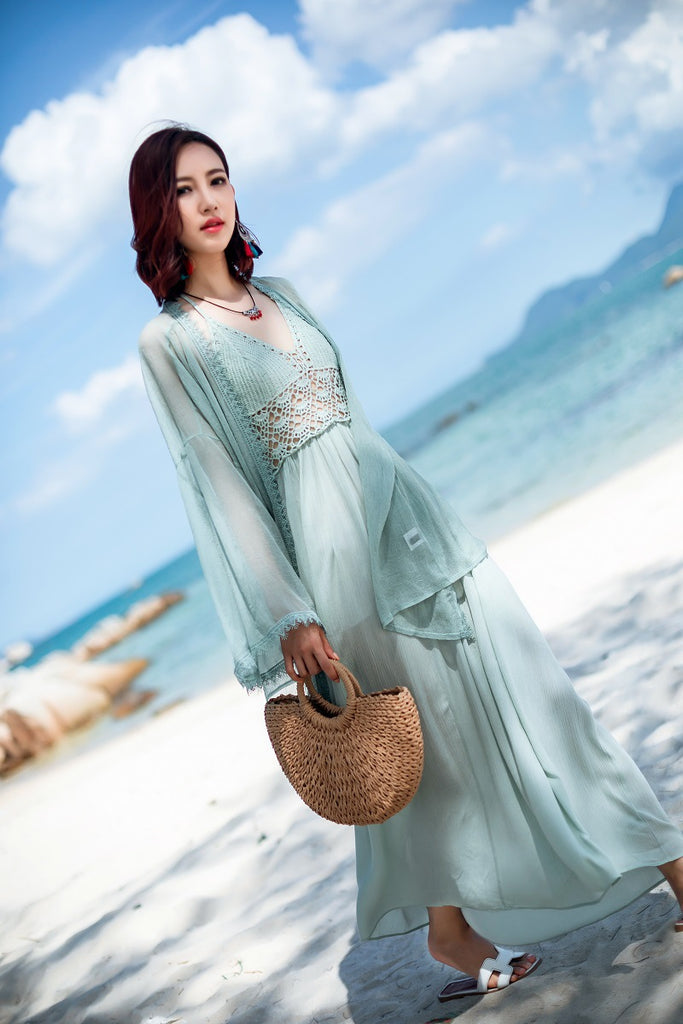Fashionable Summer Beach Walk Women Hollow Embroidery Lace Bohemian Sleeveless Backless Cardigan Dress