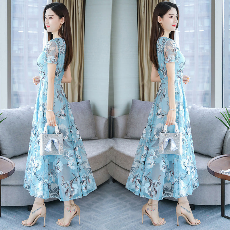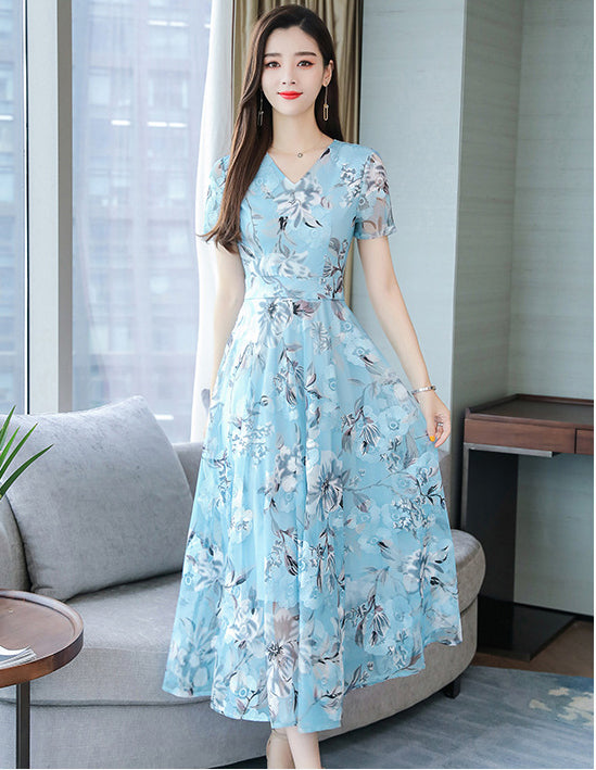 Great Look Fairy Summer Floral Printed Large Size Long Large Swing Bohemian Beach Dress