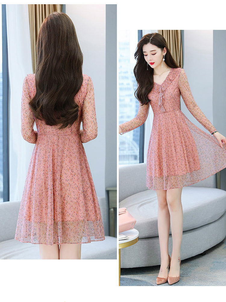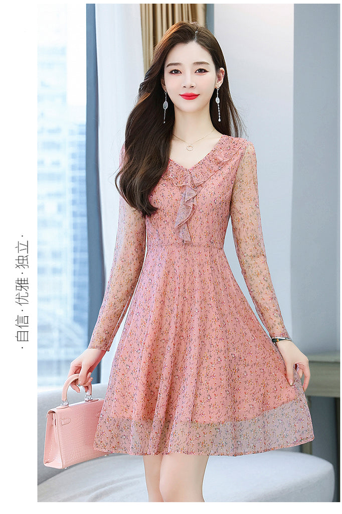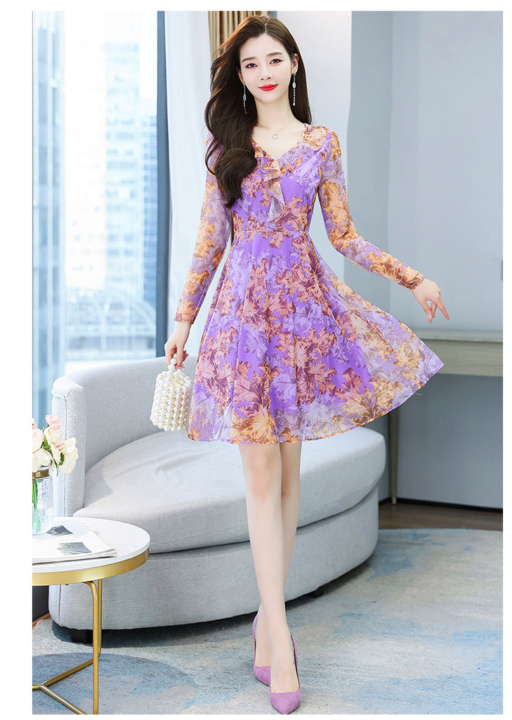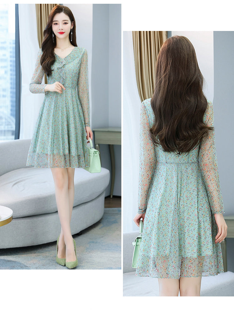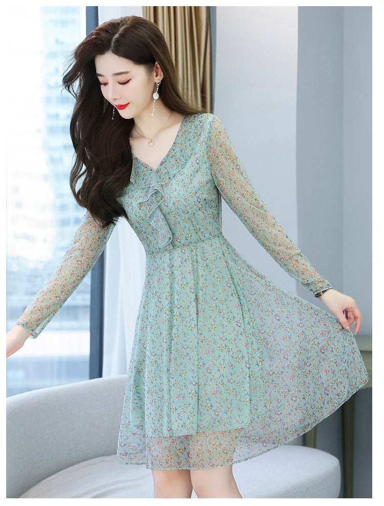 Large Size Women Clothing New fashion Floral Chiffon Temperament Waist Mid Length Skirt dress