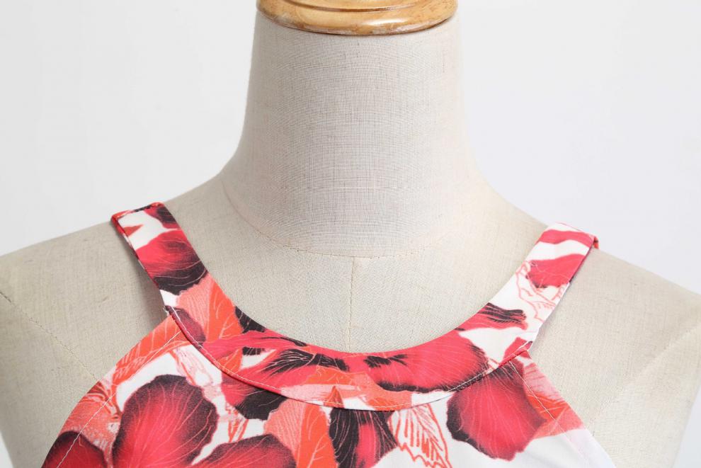 Retro 50s Style Stitching Slip Halter Neck Sling Floral A Line Skirt Dress