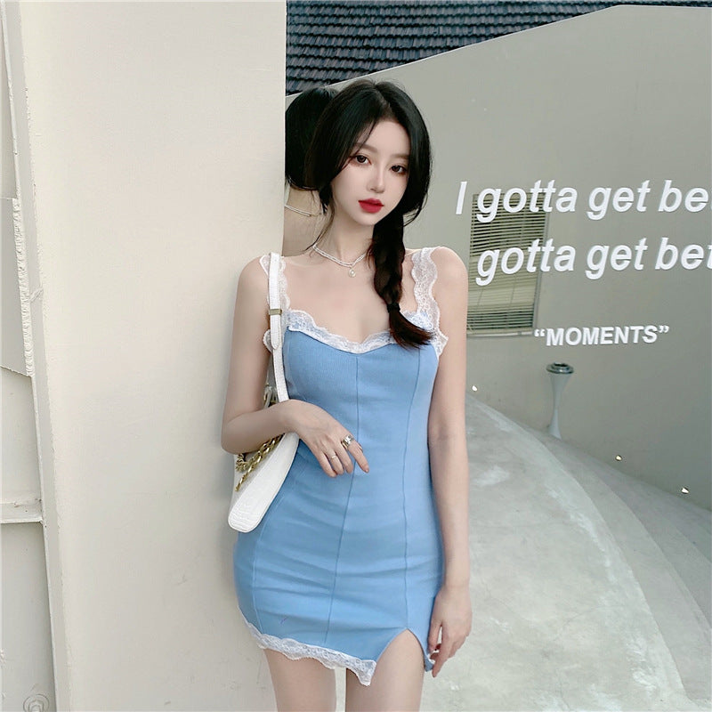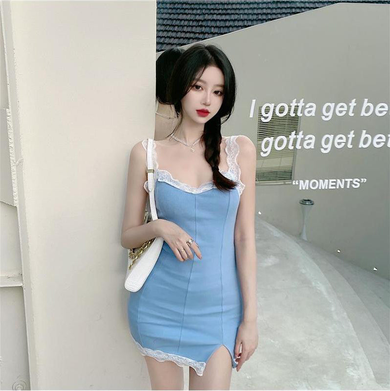 Pattern: Side Split, Lace Strap, Bodycon Style Hips Dress