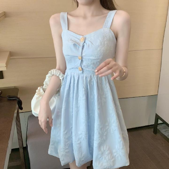 Retro Temperament Sweetie Women Sleeveless Sling High Waist Holiday Beach Dress
