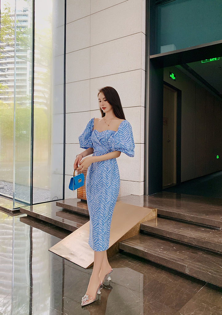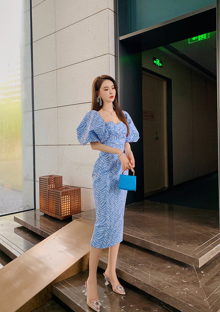 Pattern: Puff Sleeve, Pencil Dress