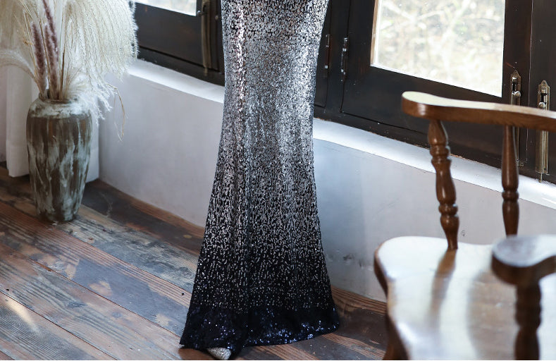 Sparkly Temperament Banquet Evening Gorgeous Shoulder Tassel V Neck Long Fishtail Dress