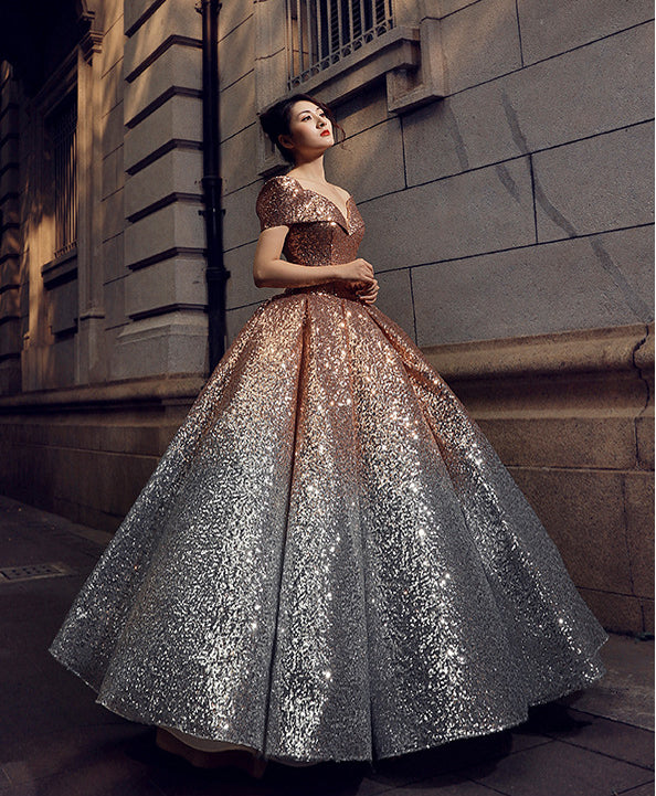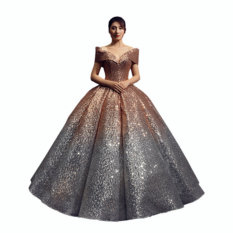 Stunning Gorgeous Bride Off Shoulder Gradient Color Change Sequins Palace Dream Princess Tutu Skirt Wedding Dress