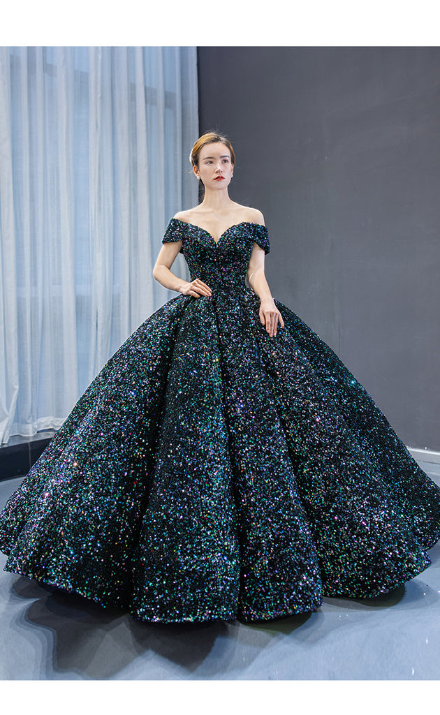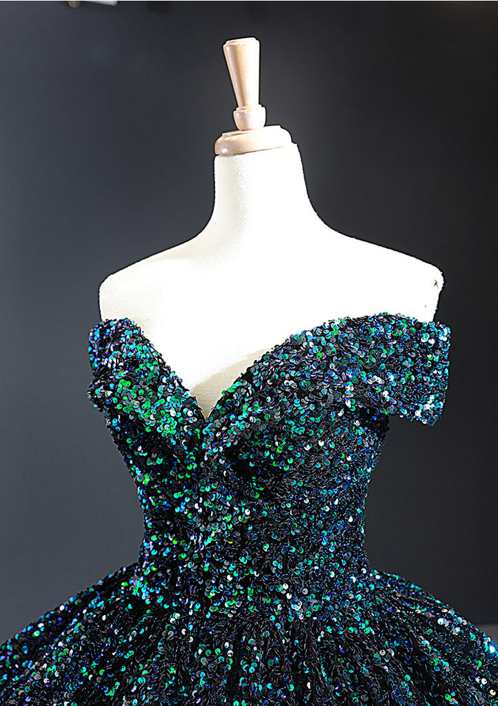 Stunning Gorgeous Bride Off Shoulder Green Sequins Palace Dream Princess Tutu Skirt Wedding Dress