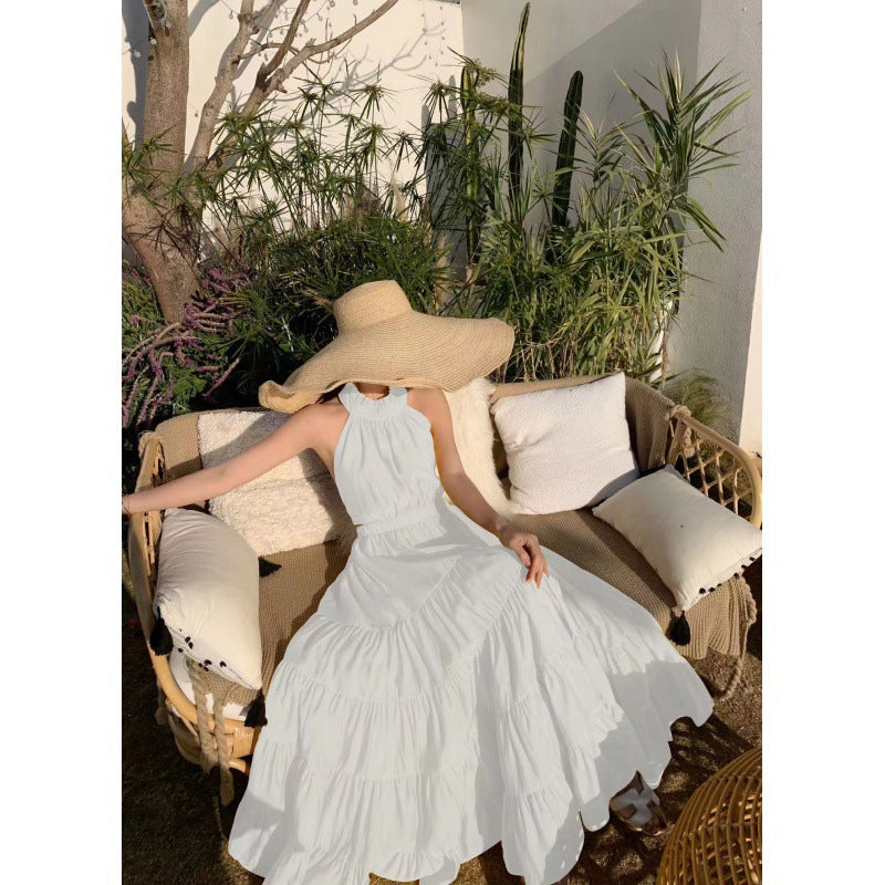 Summer Attractive Sweet Women Halter Neck Backless Bow Big Swing Cake Long Dress