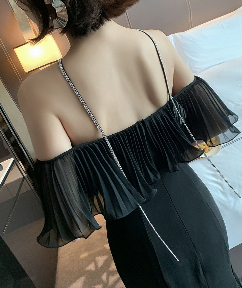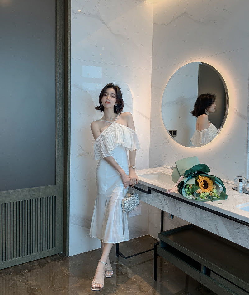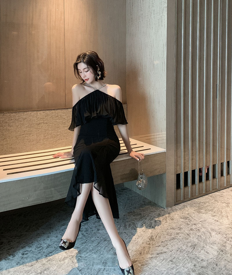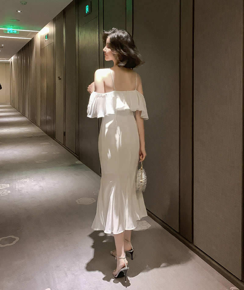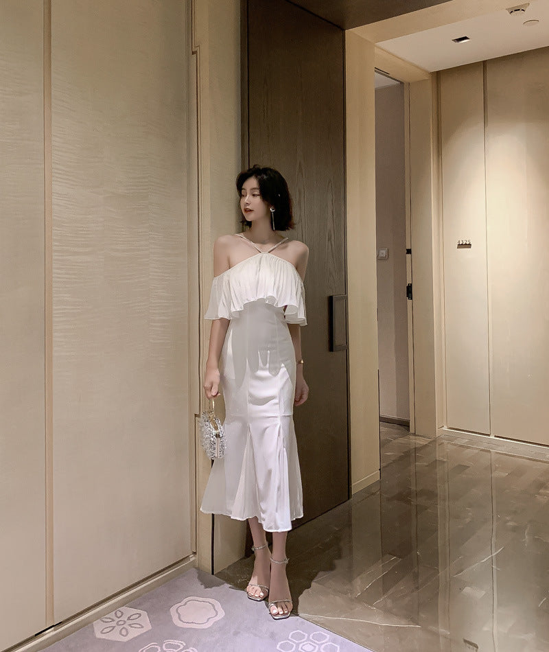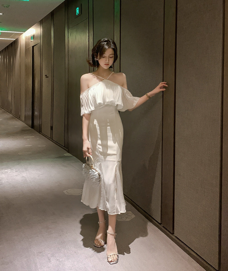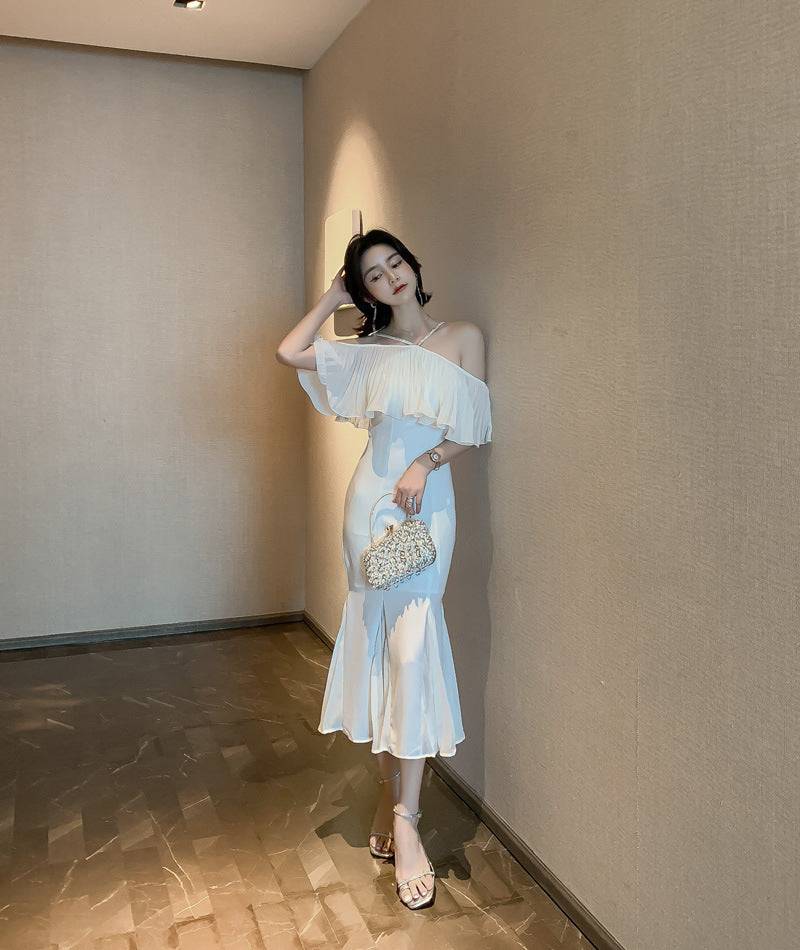 Summer Elegant Women Sexy Off Shoulder Halter Neck Ruffled Waist Mermaid Dress