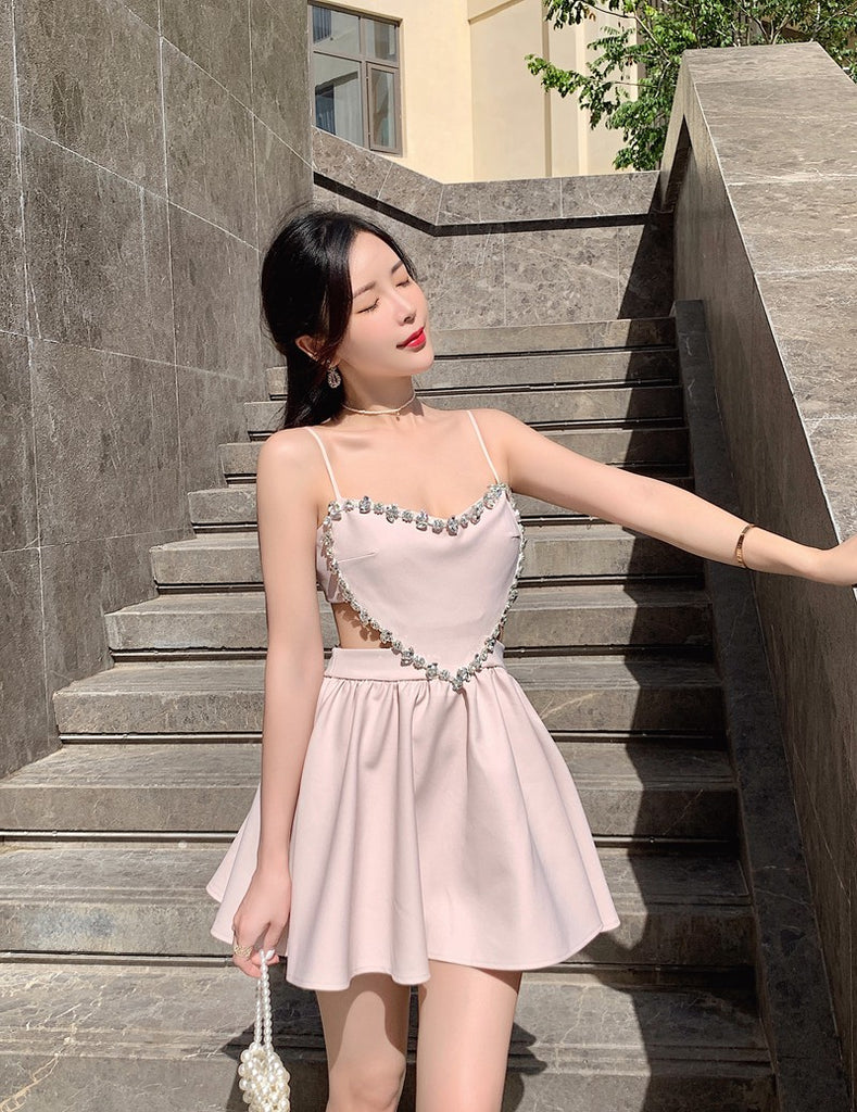 Temperament Costume Diamond Jewellery Luxury Backless Spaghetti Strap Dress