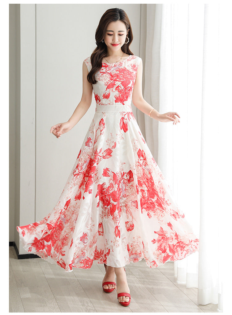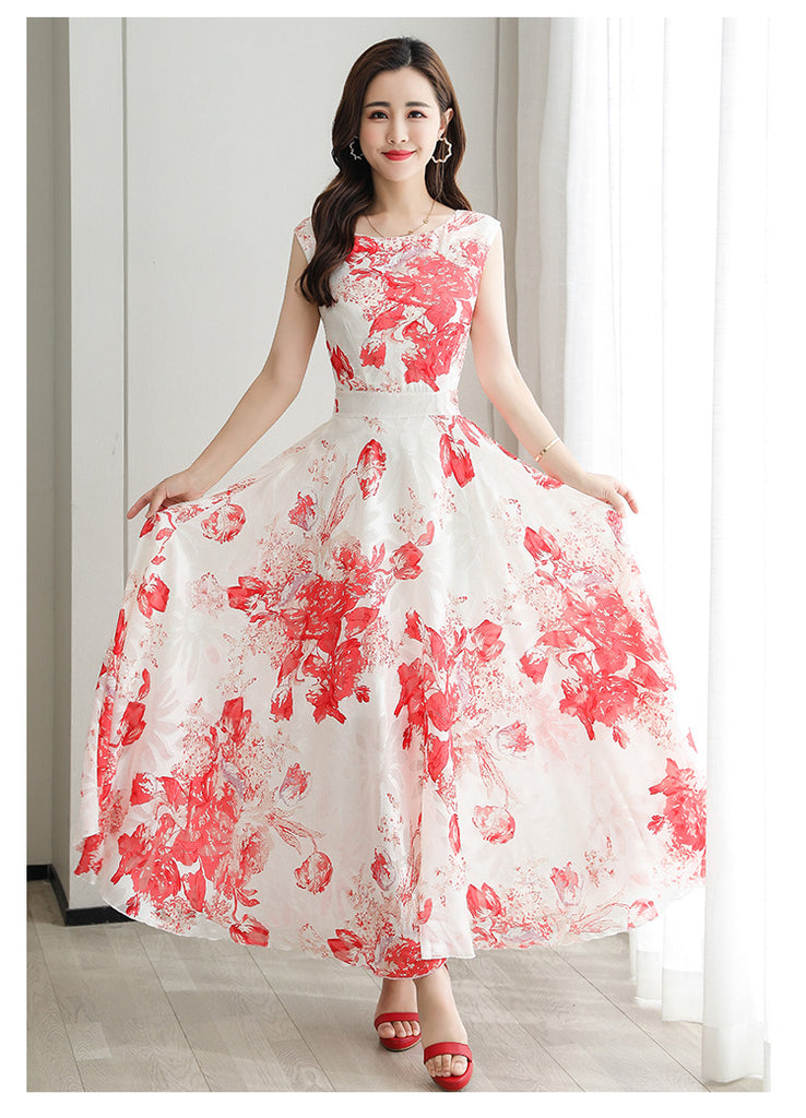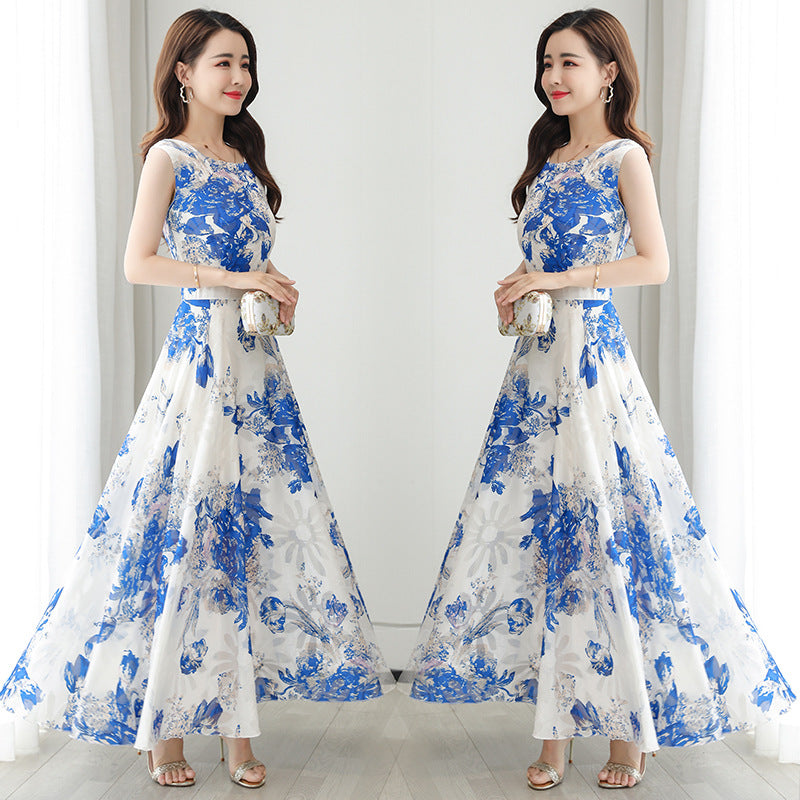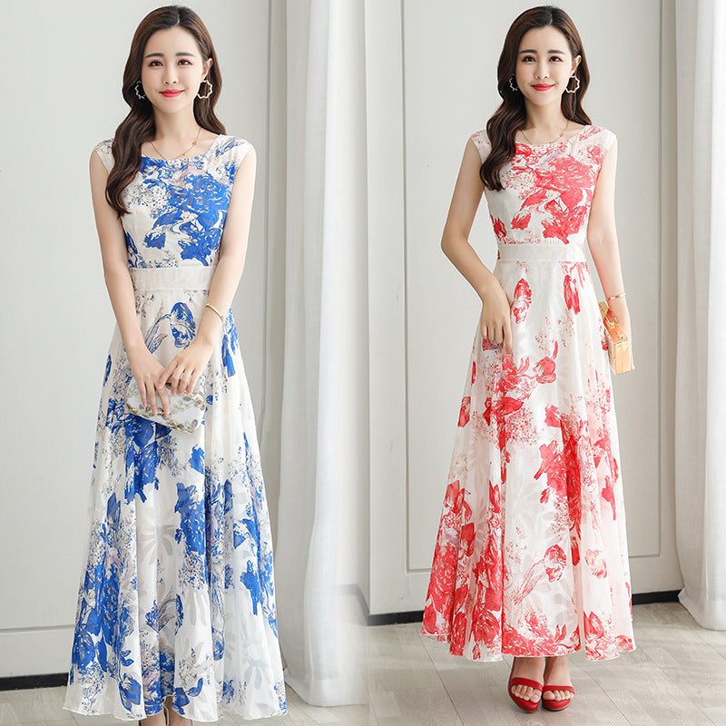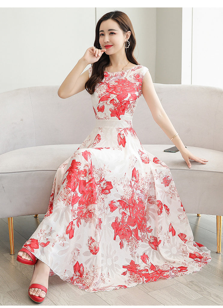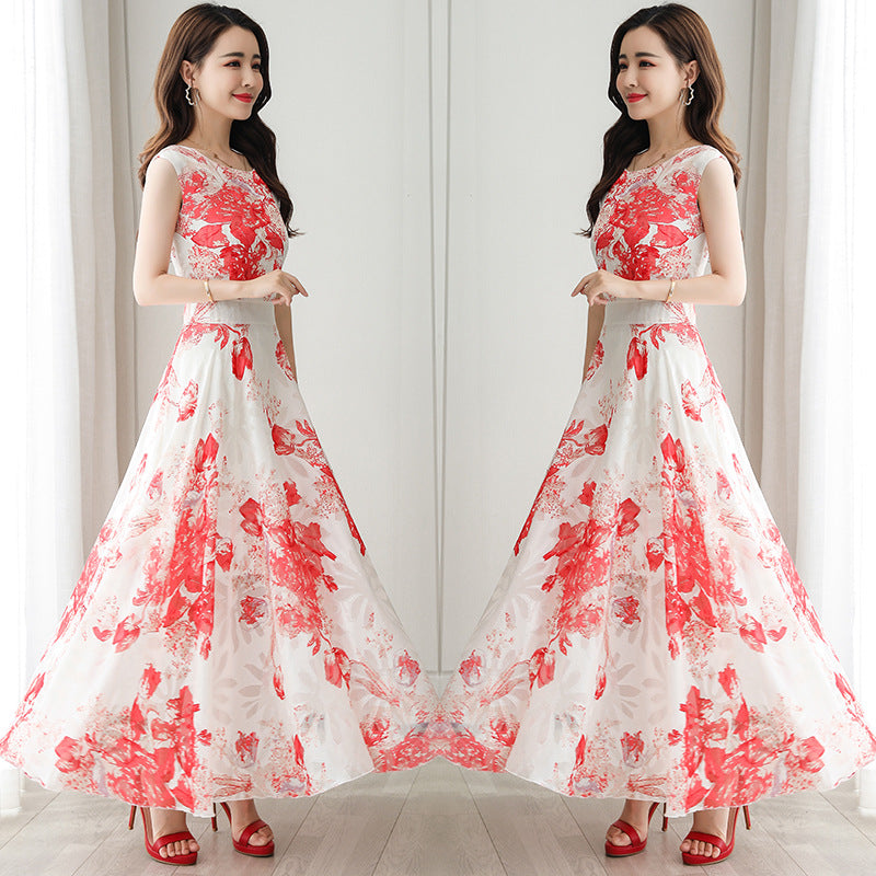 Temperament Elegant Big Swing Floral Waist Sleeveless Large Size Fairy Long Dress