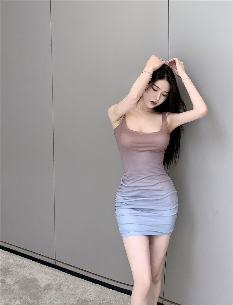 Temperament Summer Women Gradient Mesh Elastic Fit High Waist Hip Bodycon Dress