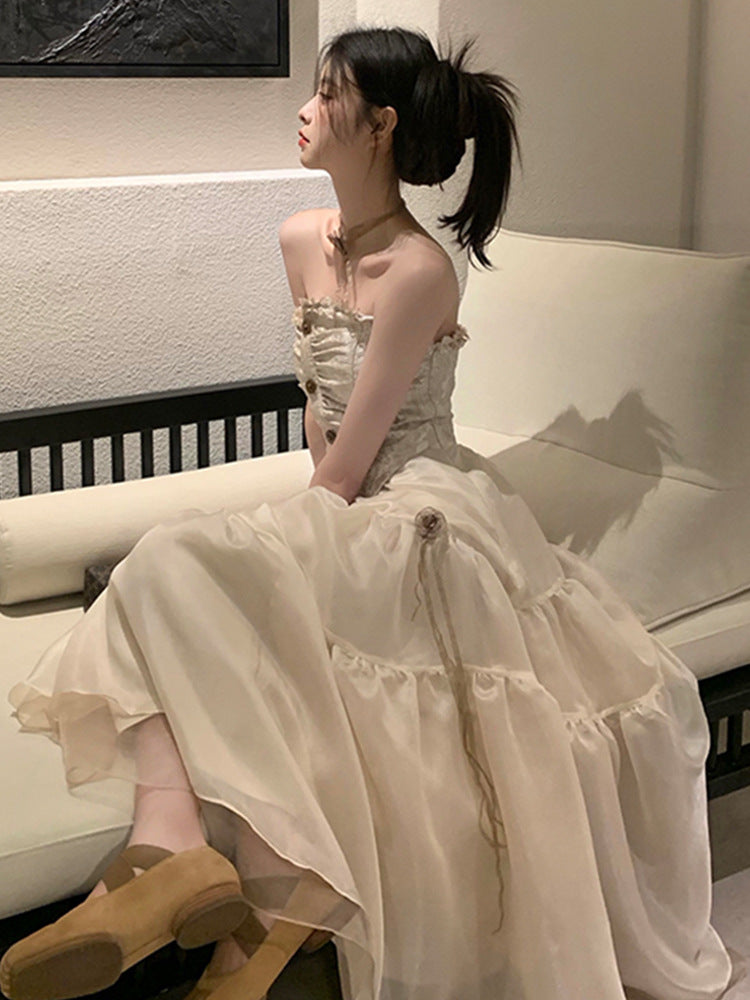 Pattern: Tube Top, High Waist, Big Swing Cake Dress