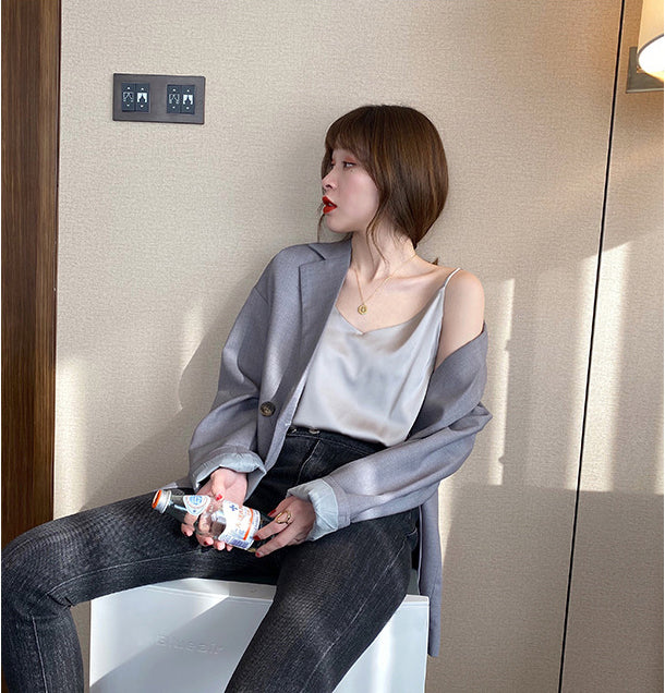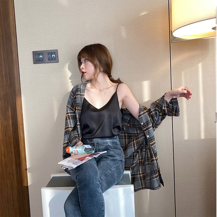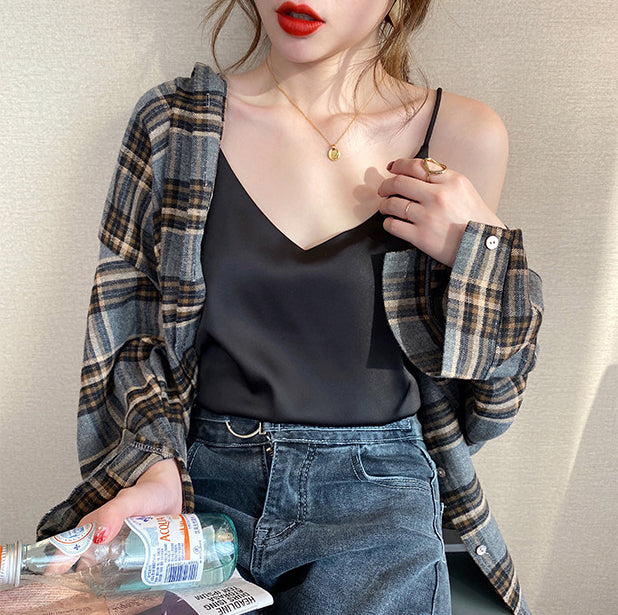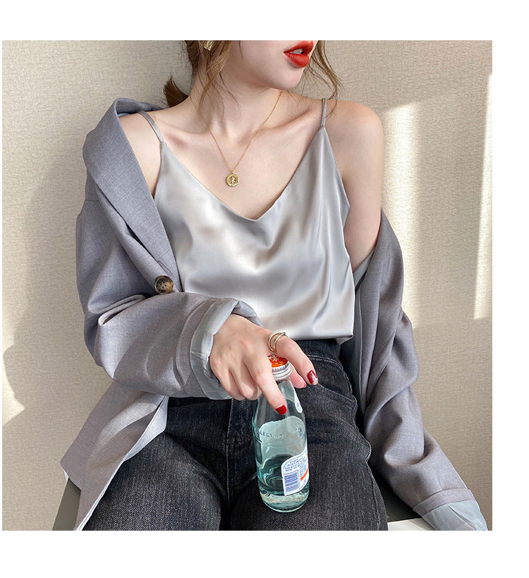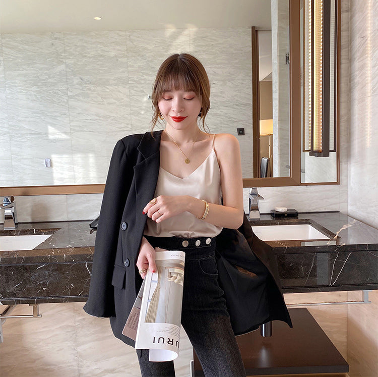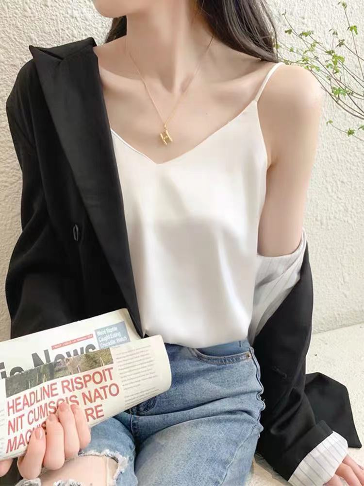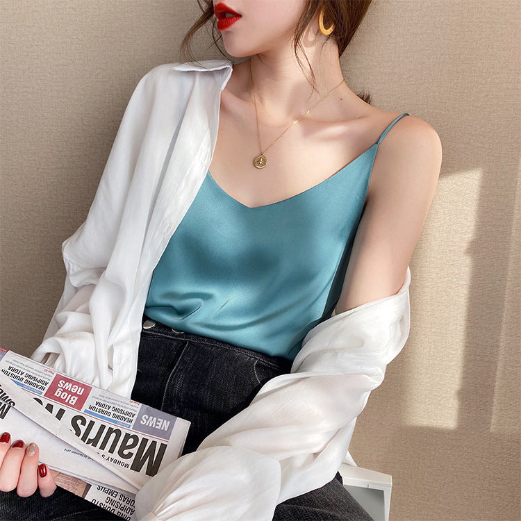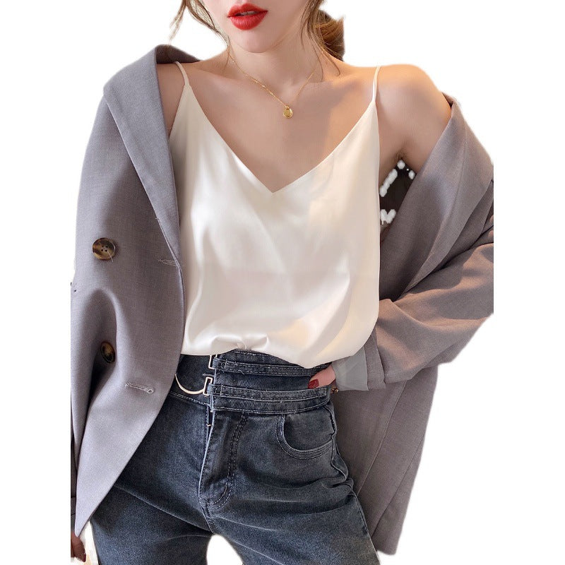 Temperament Women Camisole Silk Vest Sexy Sleeveless V Neck Design Suit Casual Halter Tops Top