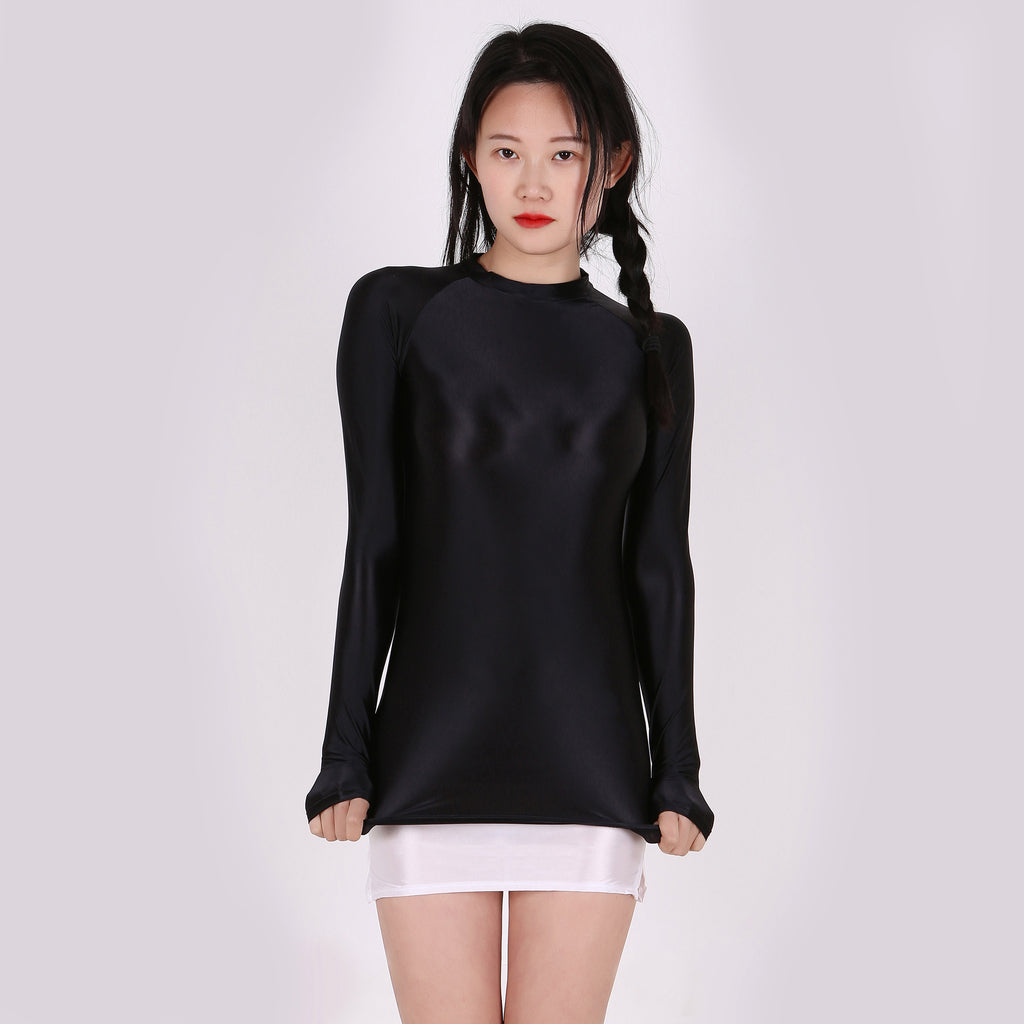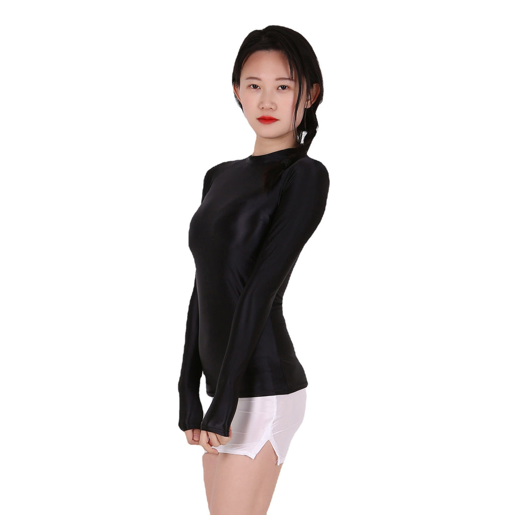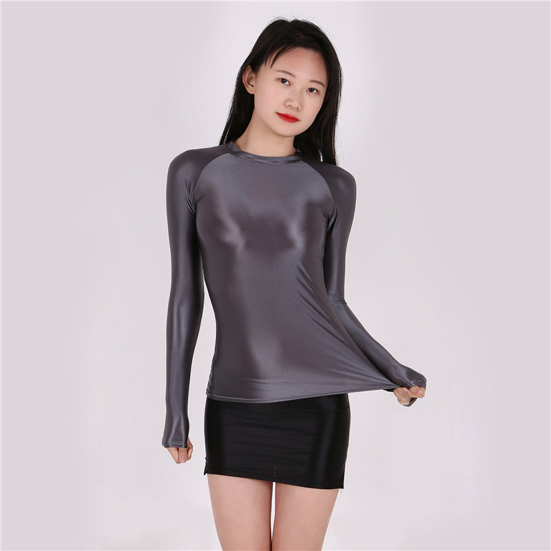 3X Women Smooth Shiny stretchy Sport Gym Yoga Outfit Long Sleeve Shirt Topwear