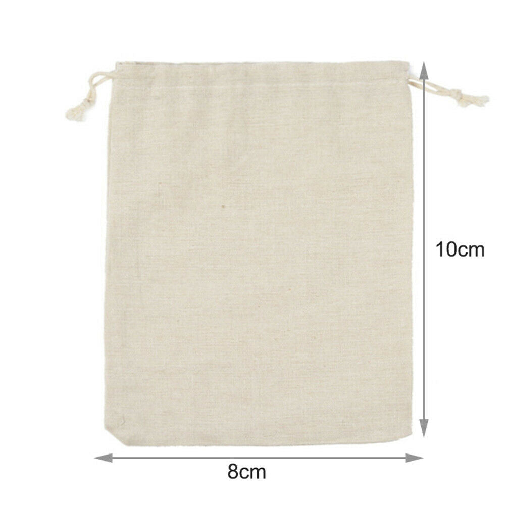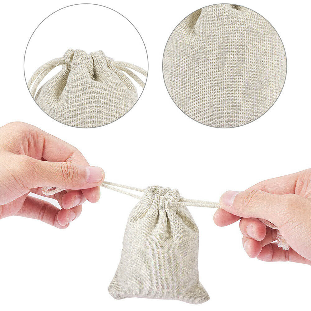 50 Beige Drawstring Bag Cotton Linen Jewelry Candy Gift Pouch Bags Travel Party