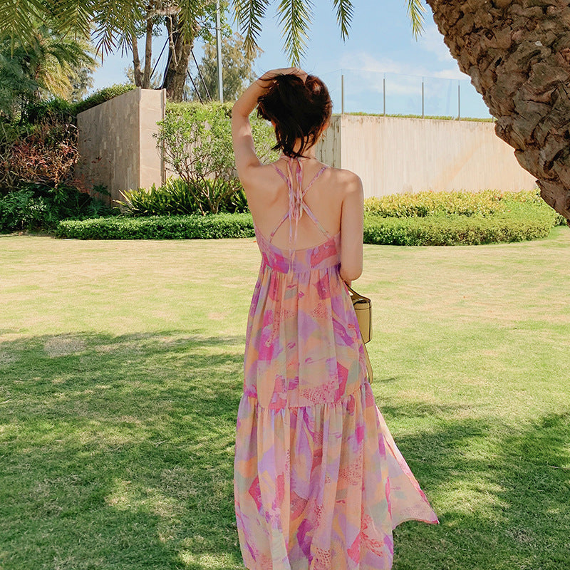 Pattern: V-neck, Backless, Floral Printed, Long Dress