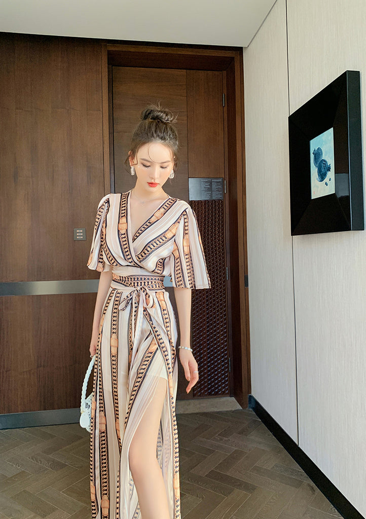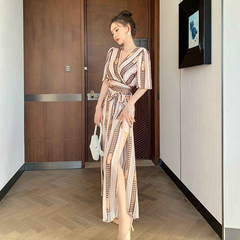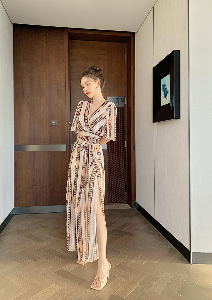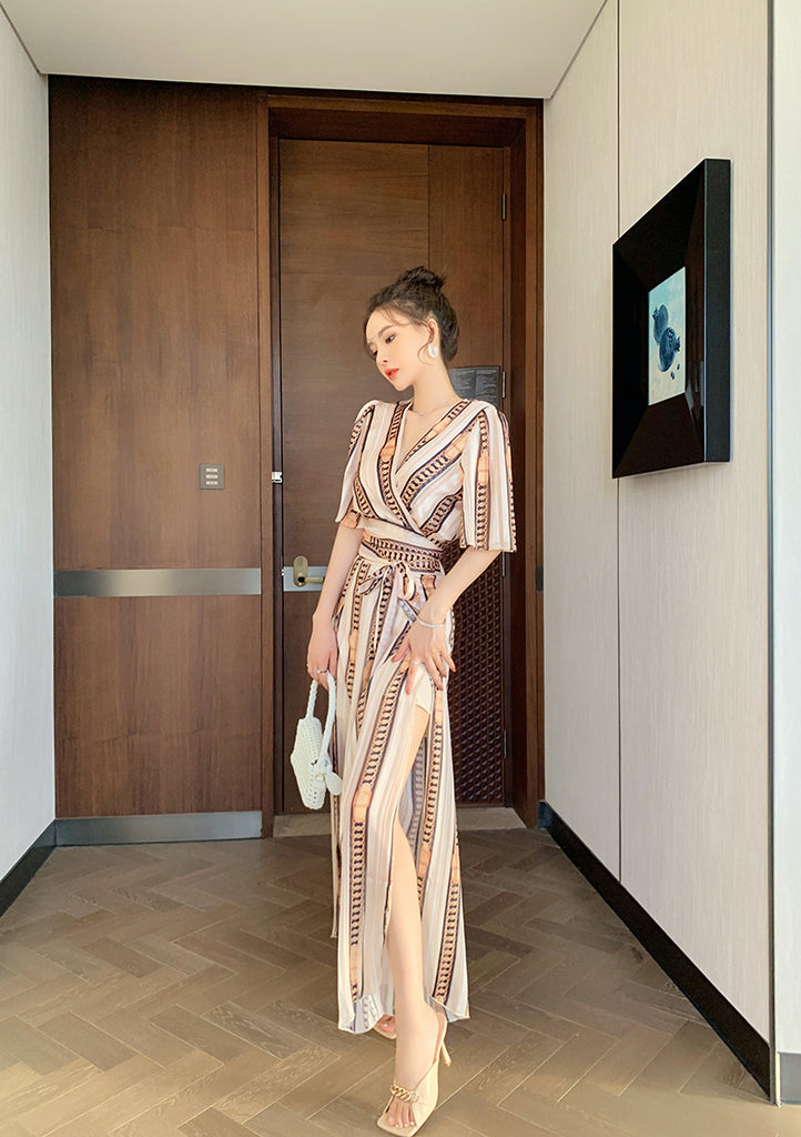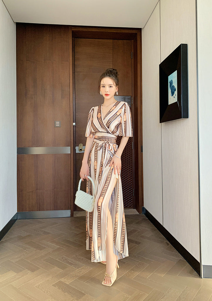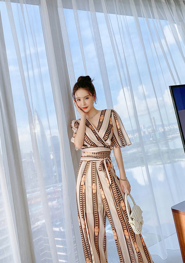 Great Look Summer Trends Elegant V Neck Office Ladies Short Sleeves Shirt Top High Waist Pants Outfit