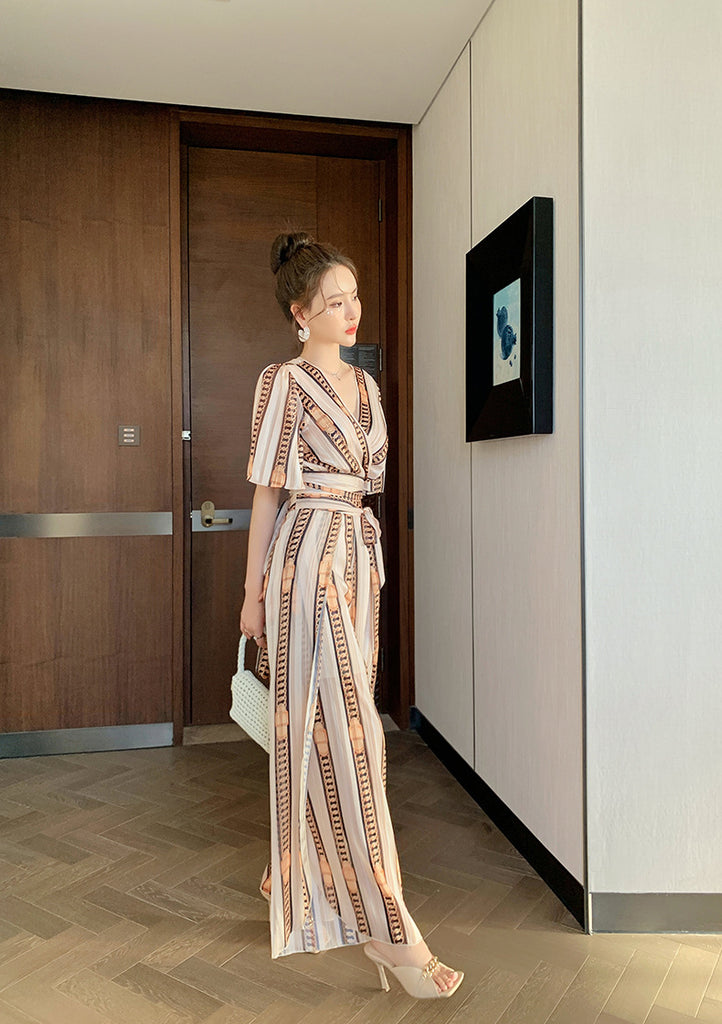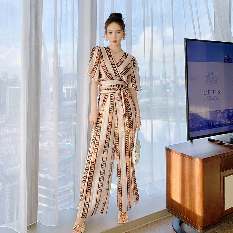 Pattern: V Neck, Wide Leg Pants, Two Piece Suit