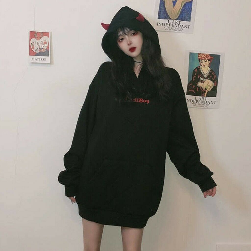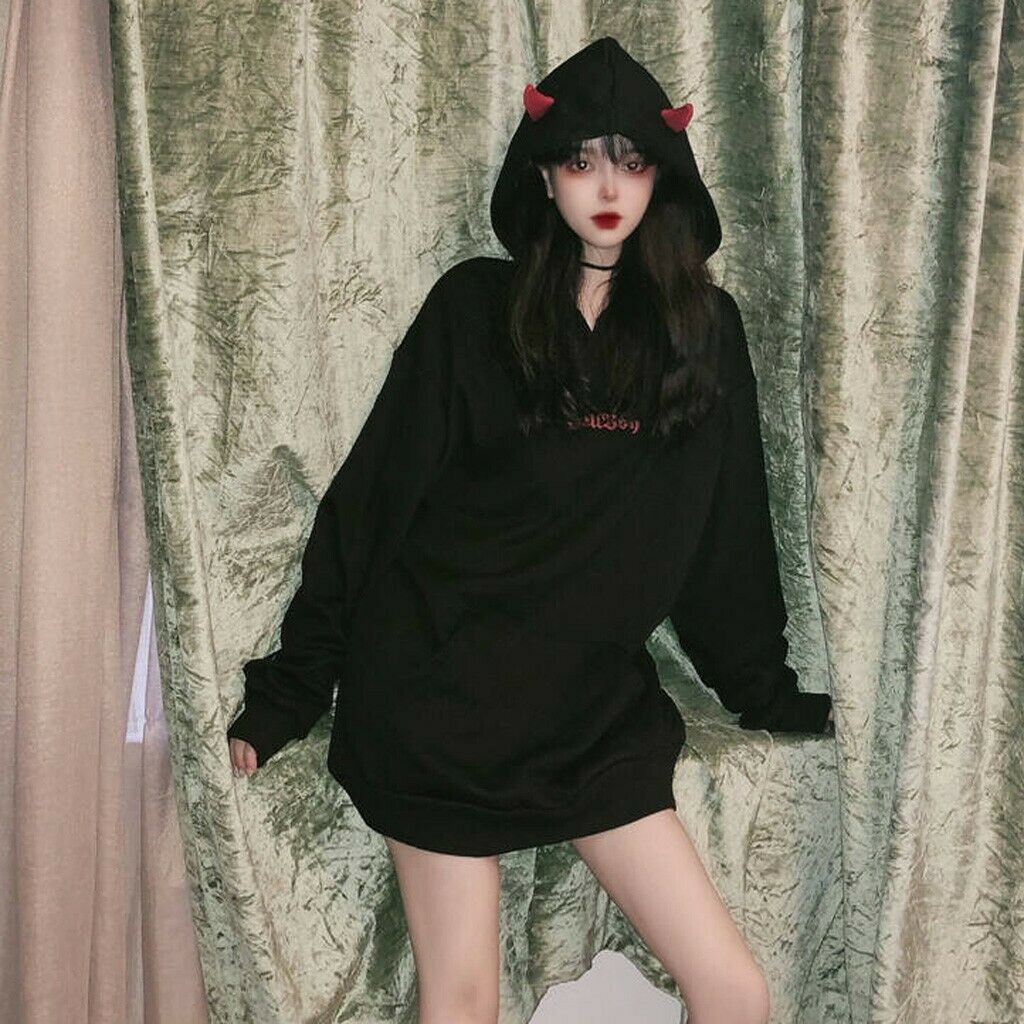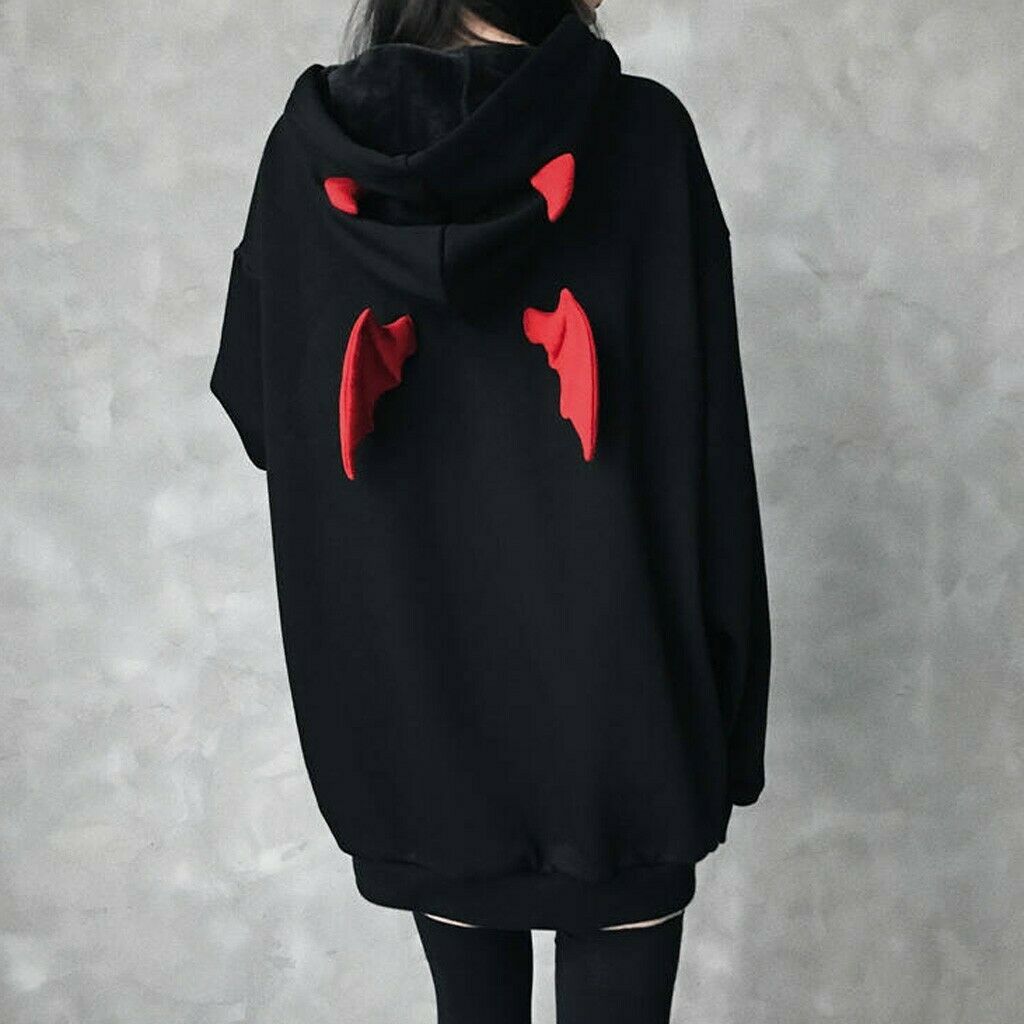 Kawaii Demon Dark Wings Hoodie Sweatshirt Punk Gothic Black Devil Sweater