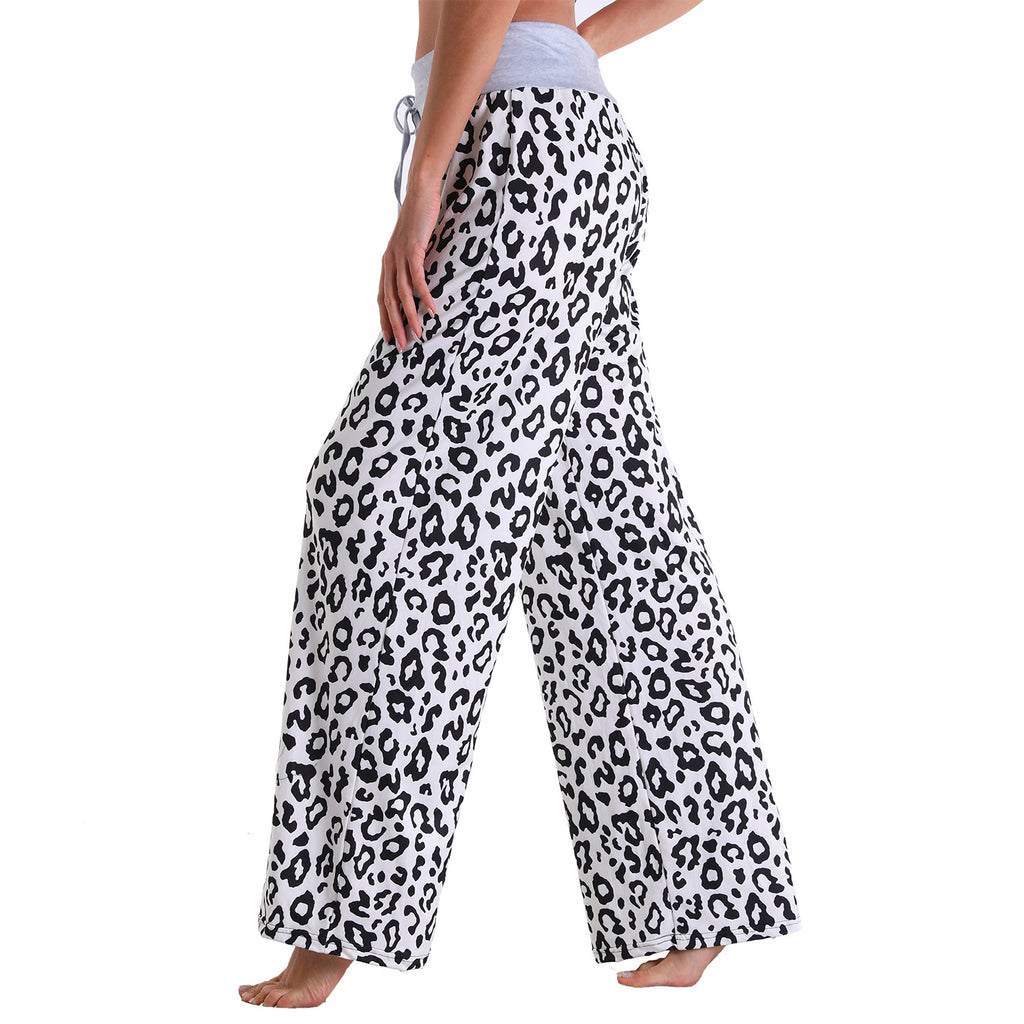 Leisure Sports Gym Fitness Women Elastic Drawstring Sweatpants Trousers Loose Fit Strap Leopard Palazzo Pattern Pants