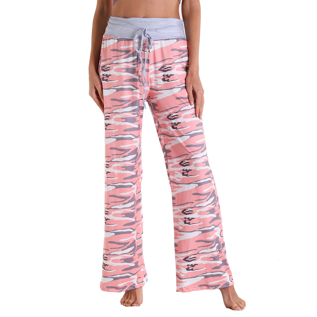 Leisure Sports Yoga Women Casual Elastic Trousers Loose Fit Strap Pink Dye Painting Printed Pants