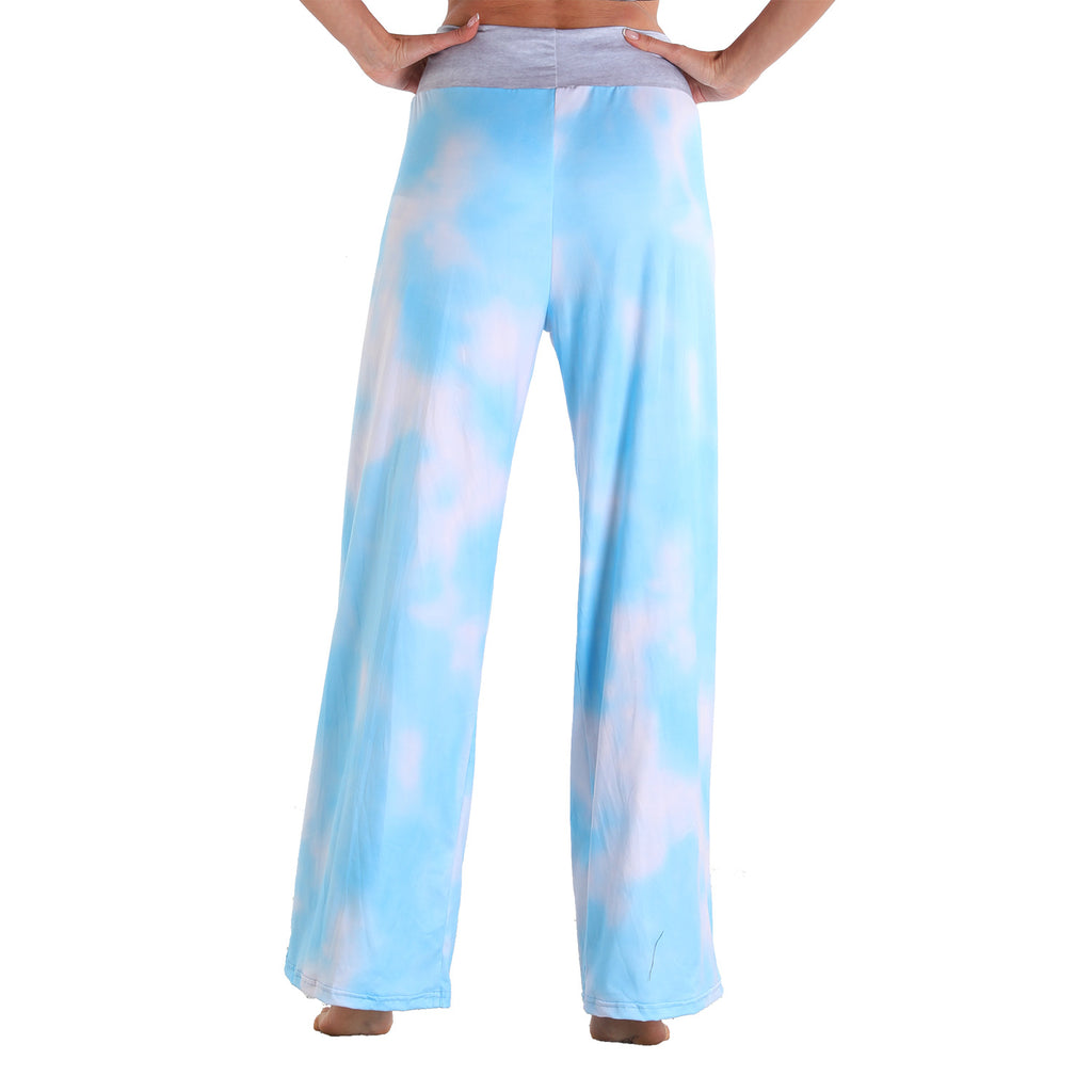 Leisure Sports Yoga Women Casual Pajamas Elastic Pocket Trousers Loose Fit Strap Sky Blue Dye Painting Printed Pants