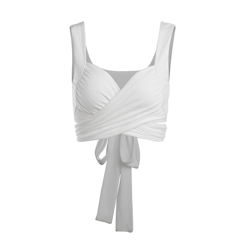 Spring Summer Solid Color sexy Open Back backless Reversible Lace Up Strappy Vest
